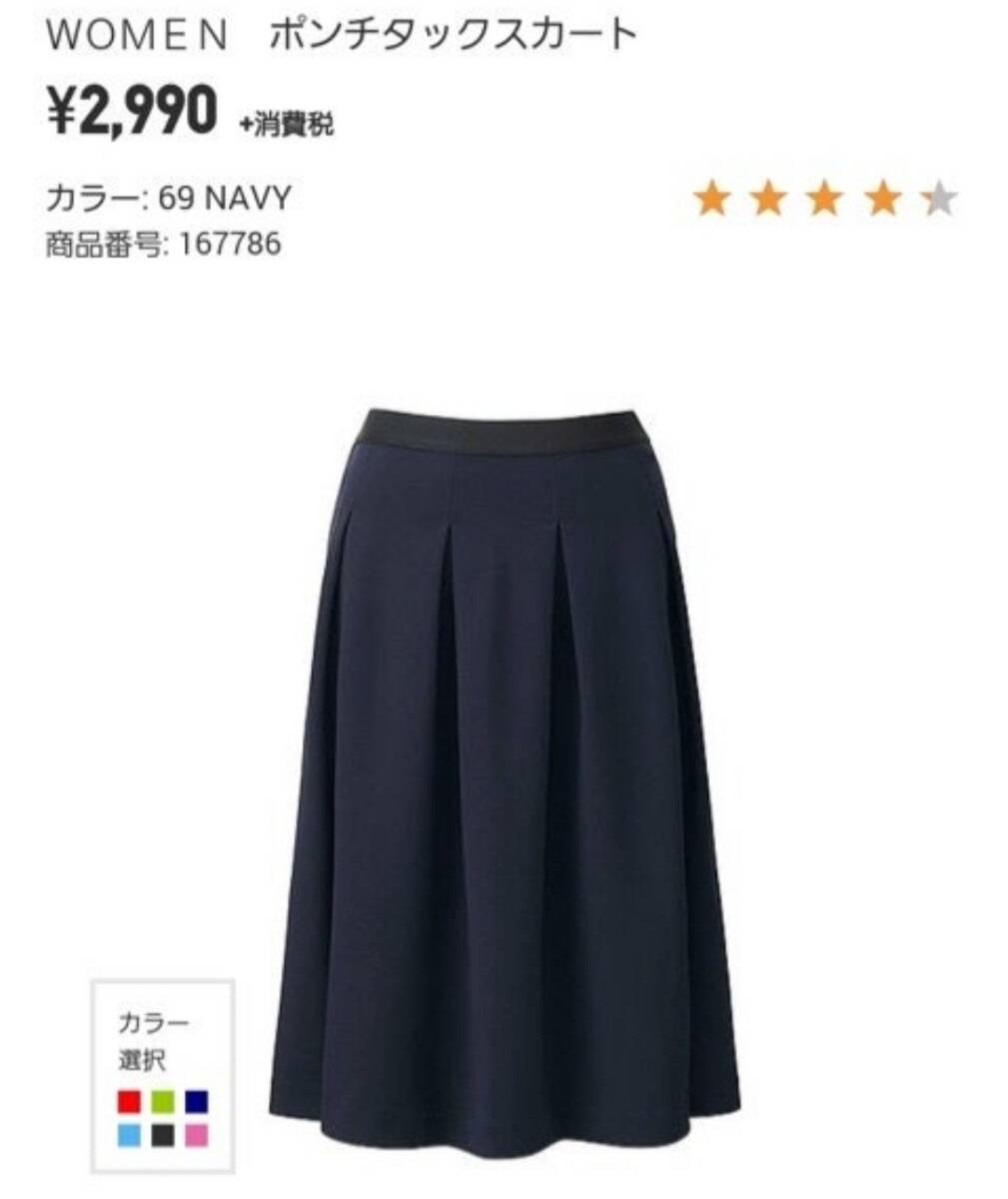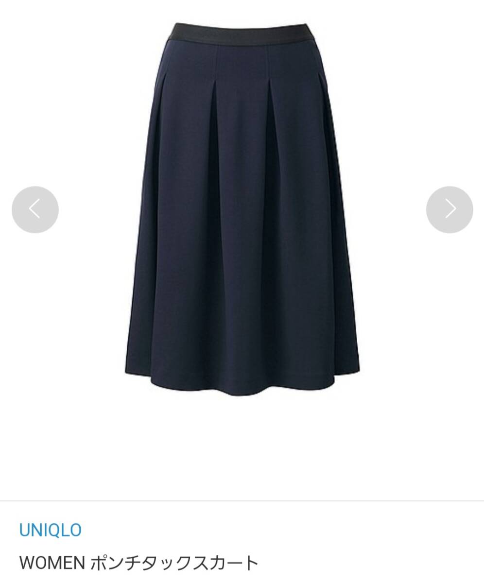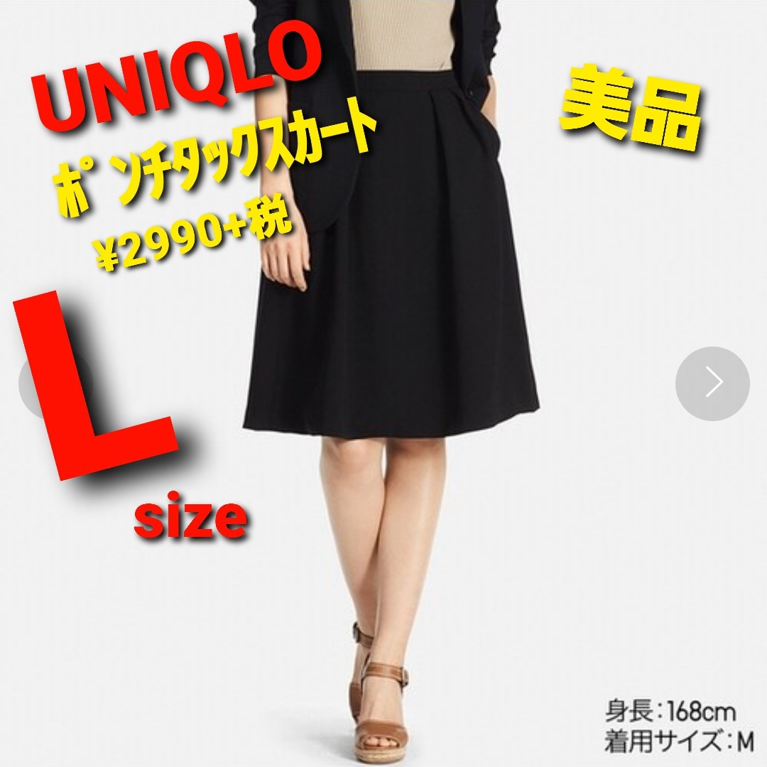s6美品 送料込★ユニクロ 2990円★ポンチタックスカート ミディ丈 フレアースカート 膝丈★Lサイズ ブラック黒色 ウエストゴム ストレッチ