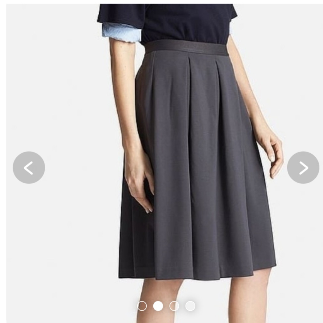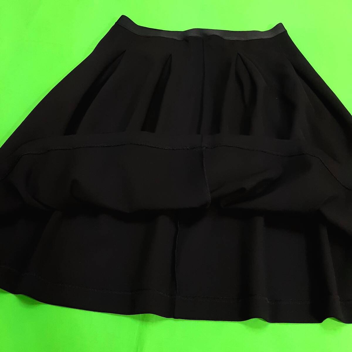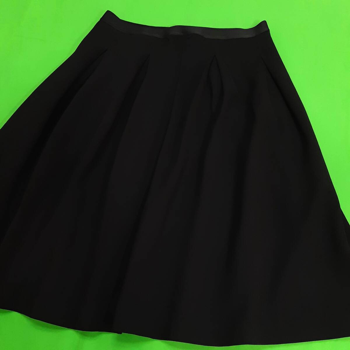 s6美品 送料込★ユニクロ 2990円★ポンチタックスカート ミディ丈 フレアースカート 膝丈★Lサイズ ブラック黒色 ウエストゴム ストレッチ