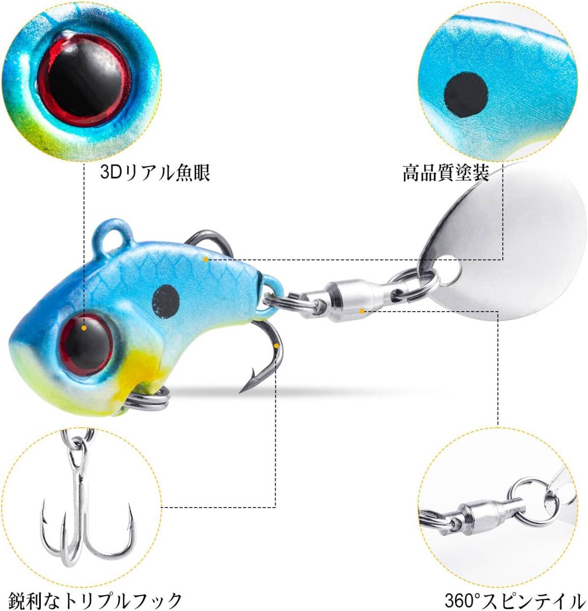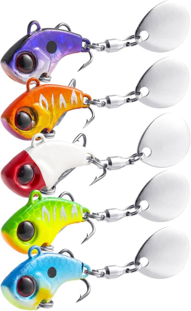 メタルバイブレーション ルアー 10g 5個セット 5色 管釣り トリプルフック付き ブレード付き スピンテール バイブレーション