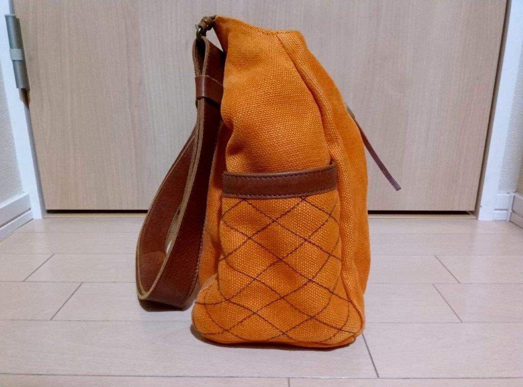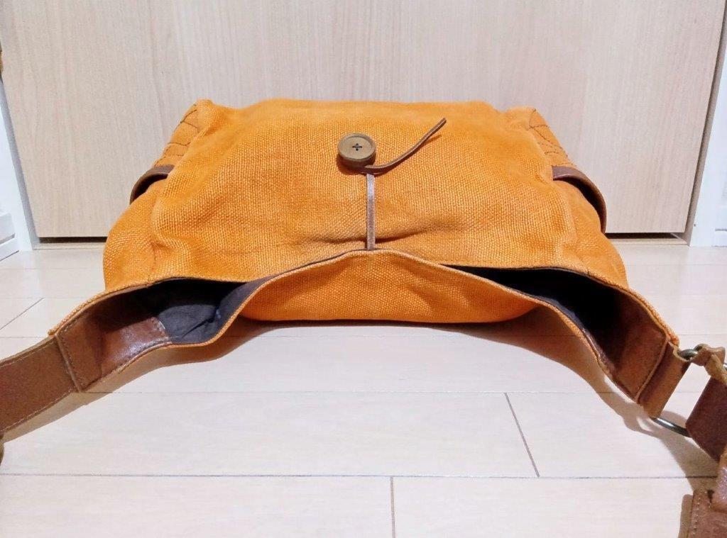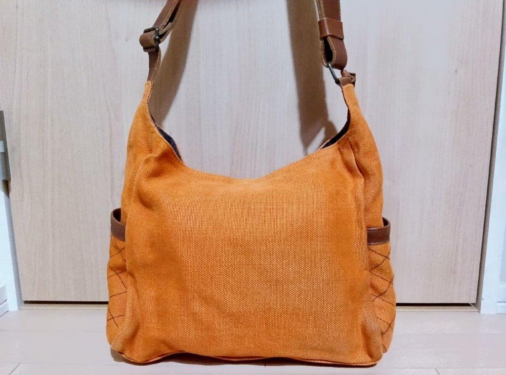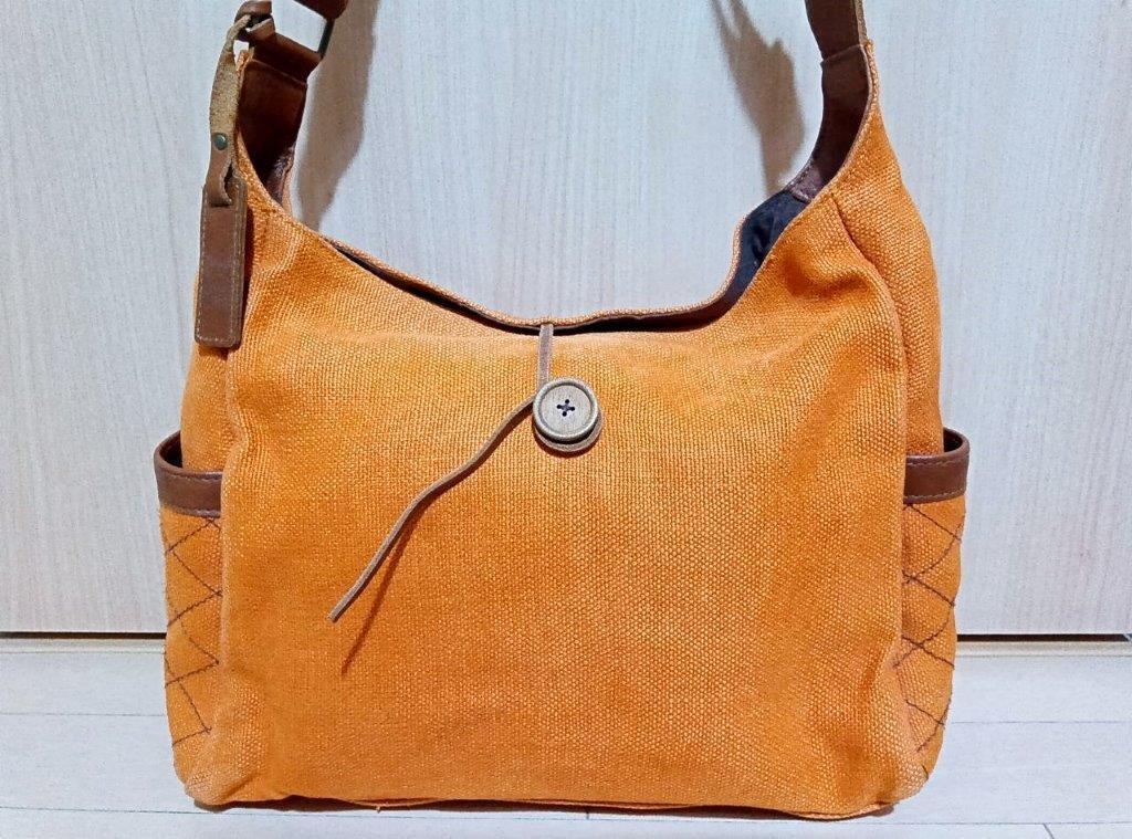 MOTHERHOUSE マザーハウス ショルダーバッグ 橙 茶色 テラコッタオレンジ ブラウン 黄麻 ジュート レザー 本革ストラップ 斜めがけ