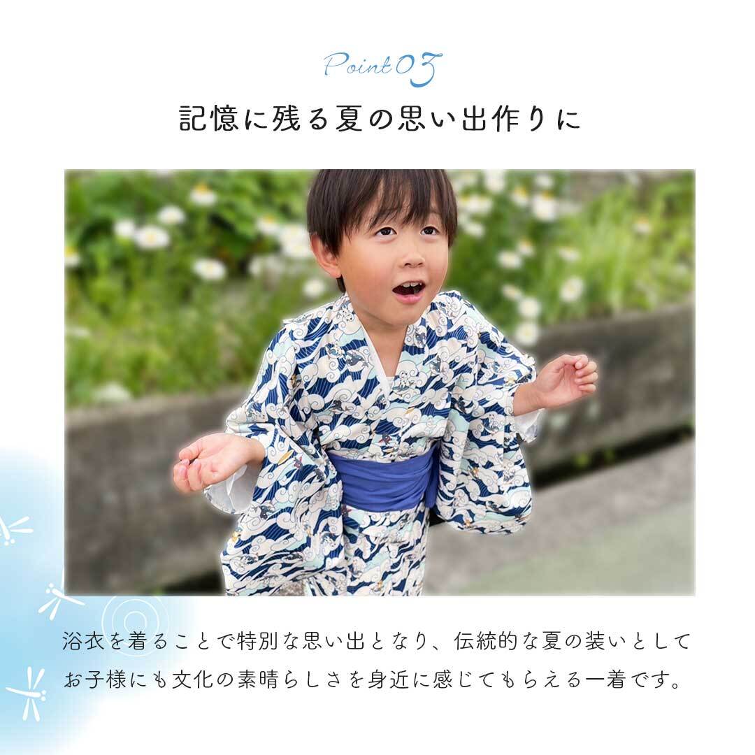 【3サイズから選択】【※購入後メッセージ下さい】子供用 着物 浴衣 サーフィン 魚 猫 浴衣+襦袢+帯 3点セット 高級感 品質重視 夏着物