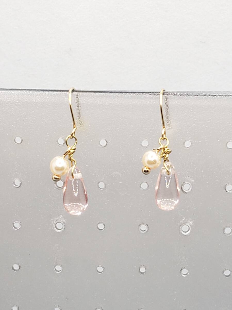 ★ハンドメイド イヤリングorピアス D154 樹脂フック・クリップ式イヤリング金具など変更無料 パール しずく型★