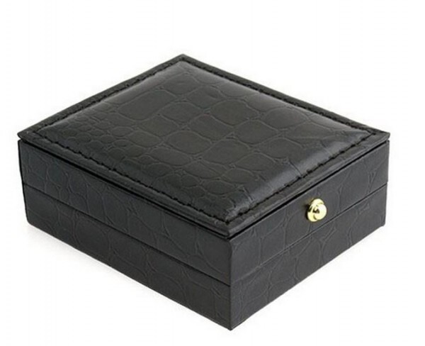 ブラッククロコダイルデザインのカフスケース(580円相等)に封入してお送り致します。