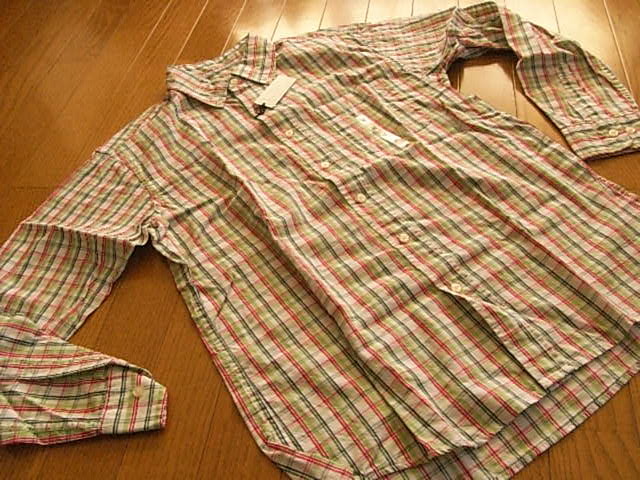 新品!コンバース かっこいい長袖ドレスシャツ ホワイト&グリーン チェック サイズM