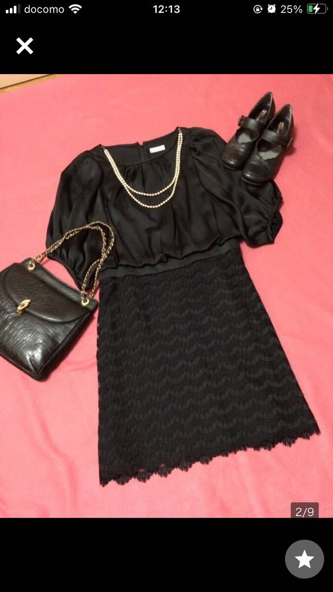 ①トップは黒のレース、スカートはグレー系にラメが入って、パーティーなどでも活躍しそうです