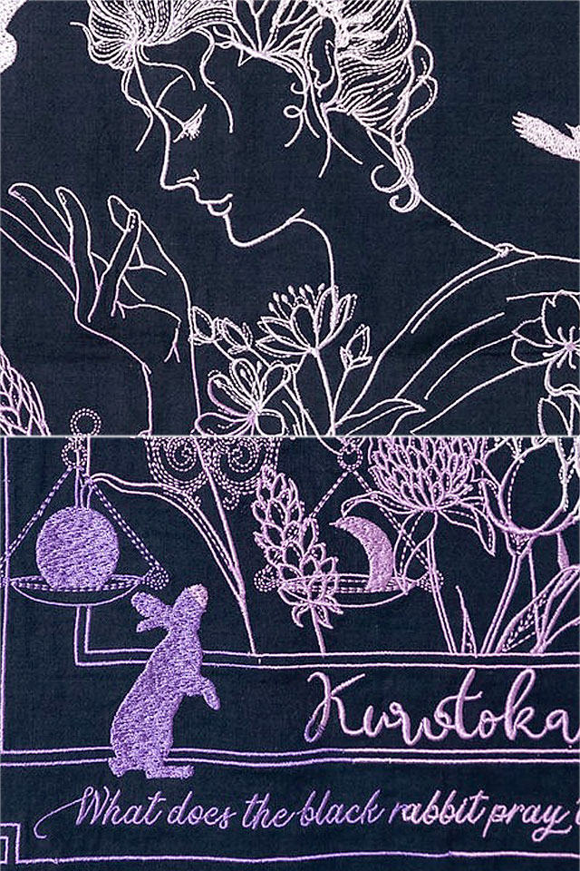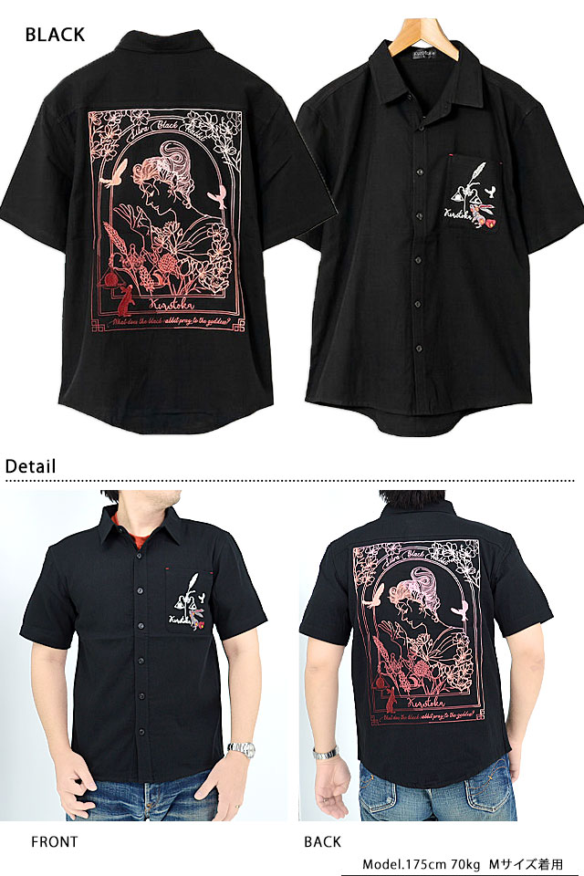 何でもあり、何でもやる新ブランド「LIN」から「黒菟華 天秤座の黒兎総刺繍半袖シャツ(AL-759060)」のご紹介です。 黒い兎がモチーフの「黒菟華(kurotoka)」から、新作が登場! てんびん座の女神を描いた作品です。 背中の女神の指に結んだ天秤には太陽と月を測りにかけている様子が描かれており、周りには花が咲き乱れ、鳥が舞っています。 黒菟華らしいロマンティックな構図が魅力的。 それぞれのボディーカラーに合わせたグラデーションカラーにも注目です。 総刺繍の豪華な半袖シャツ。 ボディーにはさらりとした肌触りの綿生地を採用しました。 | |||||||||||||||||||||||||