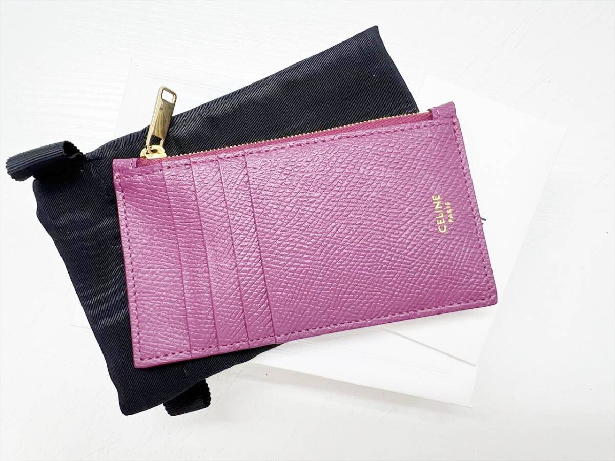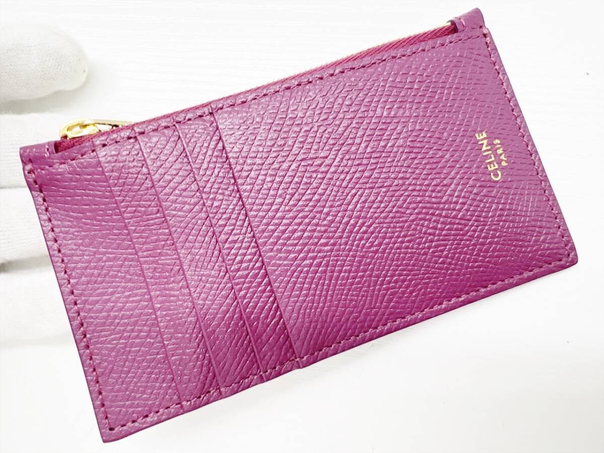 美品 Celine セリーヌ ジップ付き コンパクト カードホルダー エセンシャル フラグメントケース グレインドカーフスキン 10J893BEL