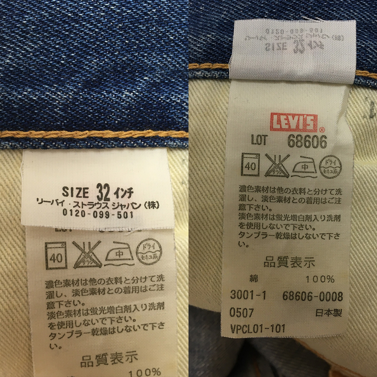 LEVI'S リーバイス 606 68606-0008 1968モデル BIG'E' LVC 日本製 07年 スーパースリム W32 オレンジタブ TALONジップ ユーズド加工