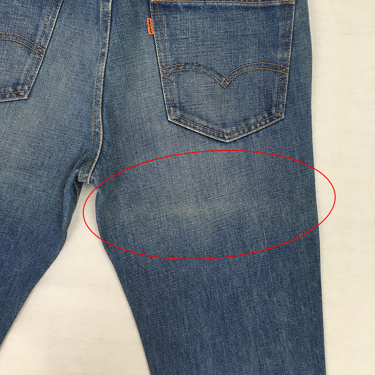 加工とは別に背面右太もも裏に直線状に薄く色落ちがあります。
