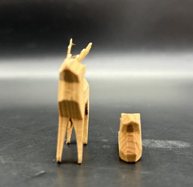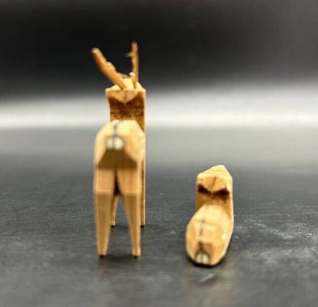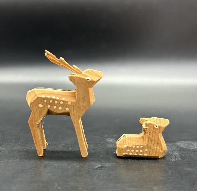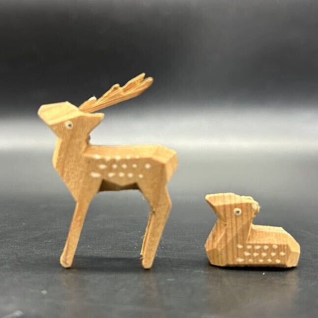 親子神鹿 一刀彫 神しか シカ 奈良 木製 オブジェ 木彫り 郷土玩具 インテリア 置物 58-3