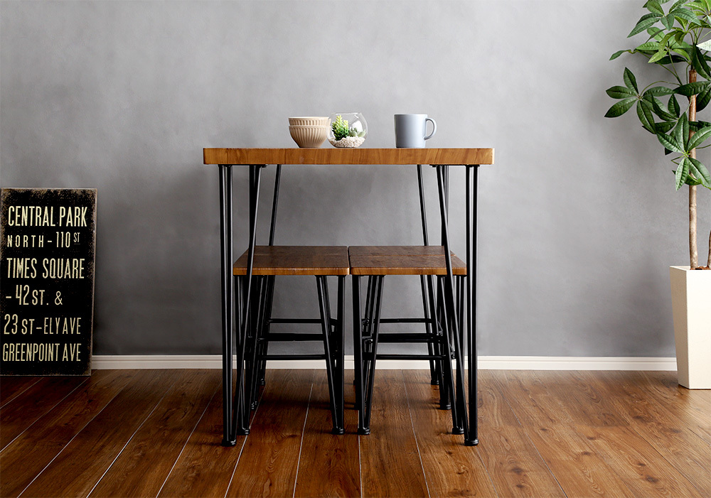 鉄脚なのでスタイリッシュに見え、テーブルひとつでお家をお洒落に!