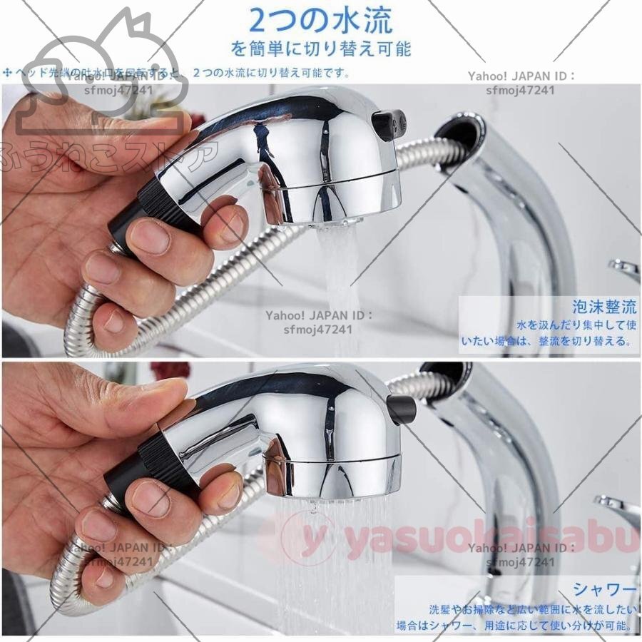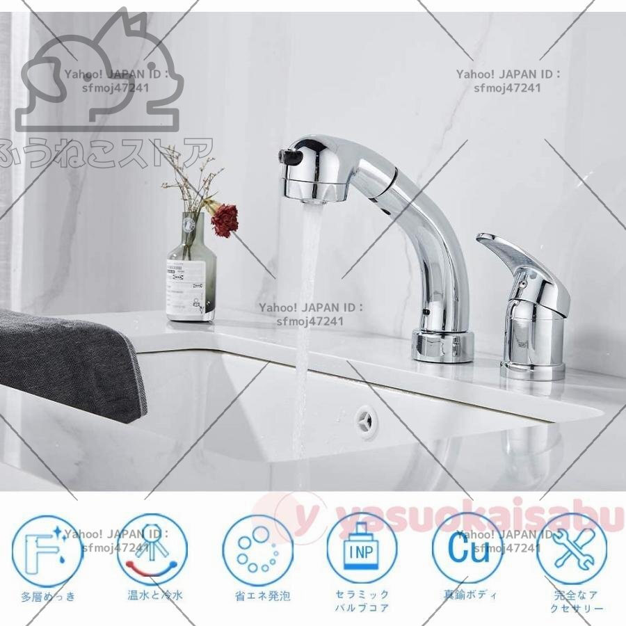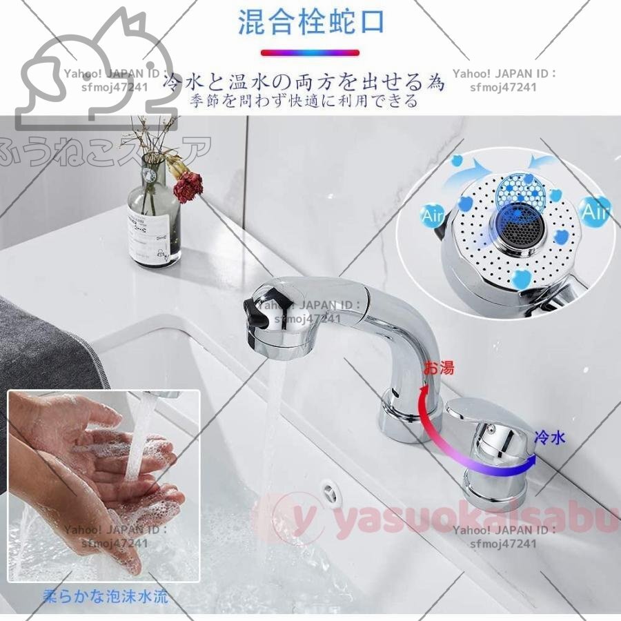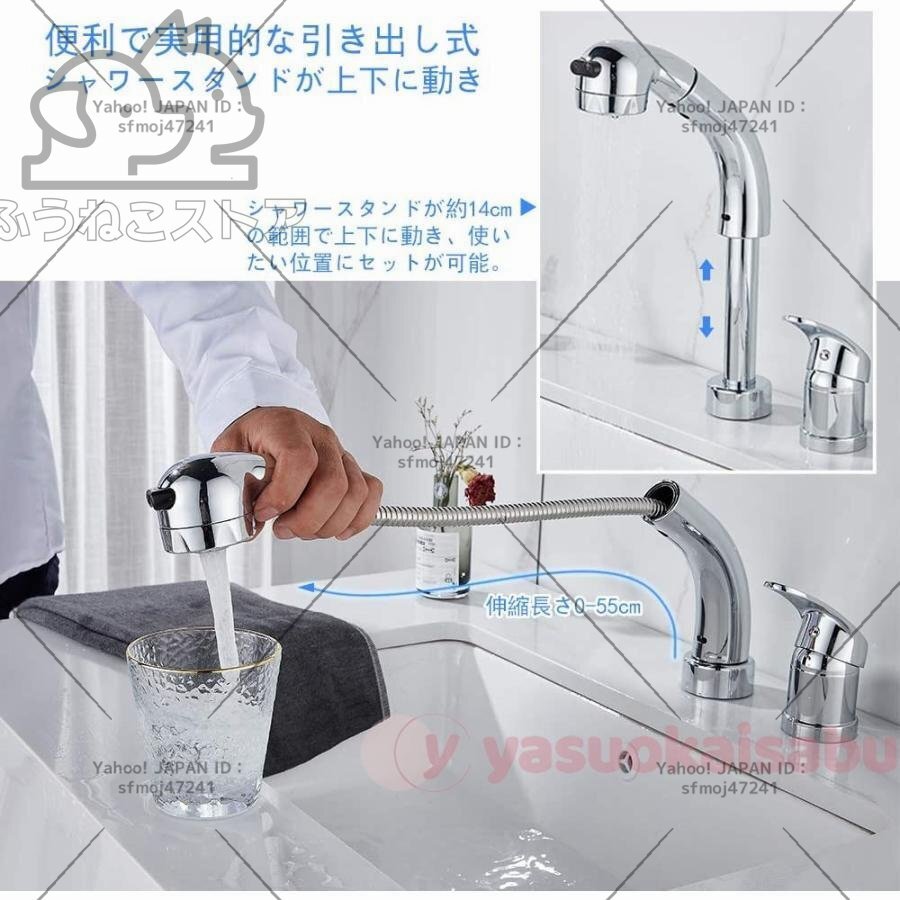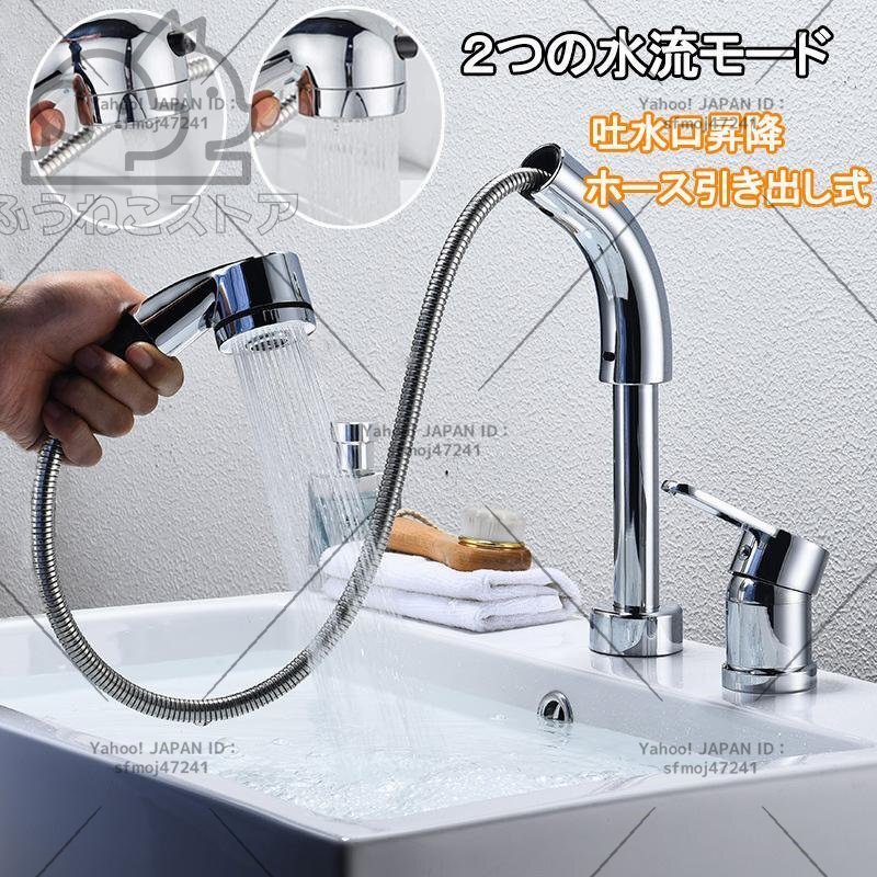 洗面台蛇口 洗面水栓 2つの水流モード 360°回転 吐水口昇降 シングルレバー混合栓 2穴台付き ホース引き出し式 取り付けホース付き 598