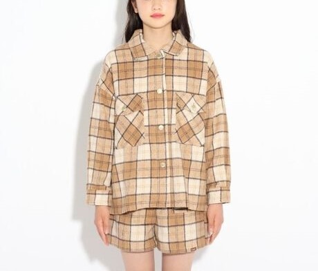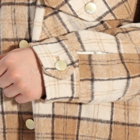 表面をほんのりヘアリーに起毛させたシャギー生地。通常のフランネルシャツ生地よりやや肉厚のぬくもりある風合いですが、着心地は軽やかめ、シャツ感覚で着用いただけます。