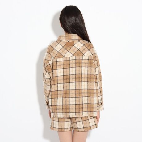 チェック柄とほんのり毛羽立ったウォーミーな風合いがシーズンムードを運ぶジャケット。
