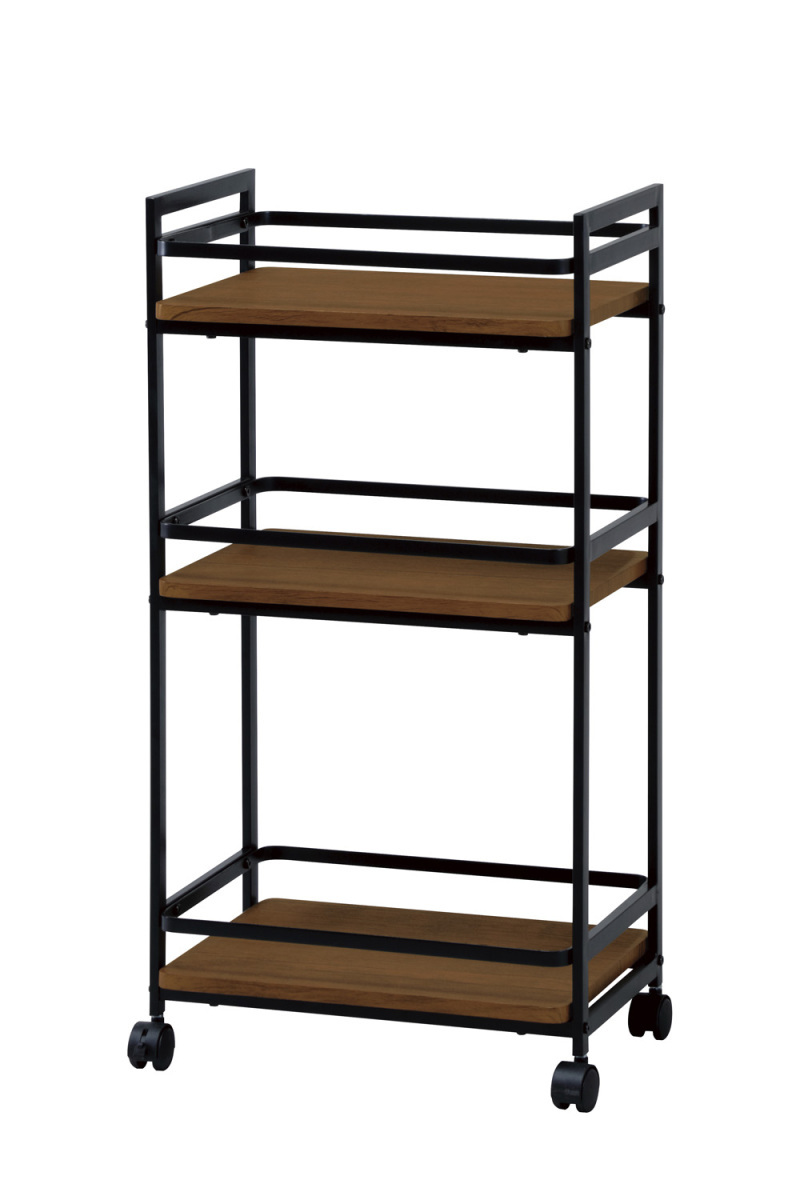 サイズ:W435×D300×H840mm 棚サイズ:W410×D300mm 仕様:棚板:MDF(15mm厚) PVC貼り フレーム:スチール(□20×10mm) 粉体塗装 機能:●キャスター:ストッパー付2個・ストッパーなし2個 耐荷重: 全体:30kg 棚:15kg ※こちらの商品は北海道、沖縄県及び離島へお届けできません。 中国
