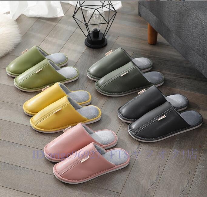A5444☆秋冬 スリッパ 室内 レディース メンズ 4足セット ハウススリッパ フランネル pu革 滑り止め 秋冬春部屋用 ルームシューズ 来客