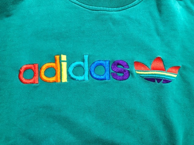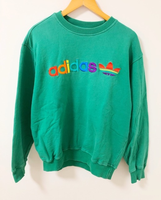 adidas(アディダス)80's~90's 銀タグ 中国製 ロゴ レインボー刺繍 クルーネック スウェット トレーナー【E4010-007】