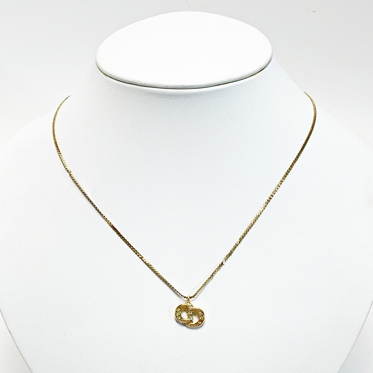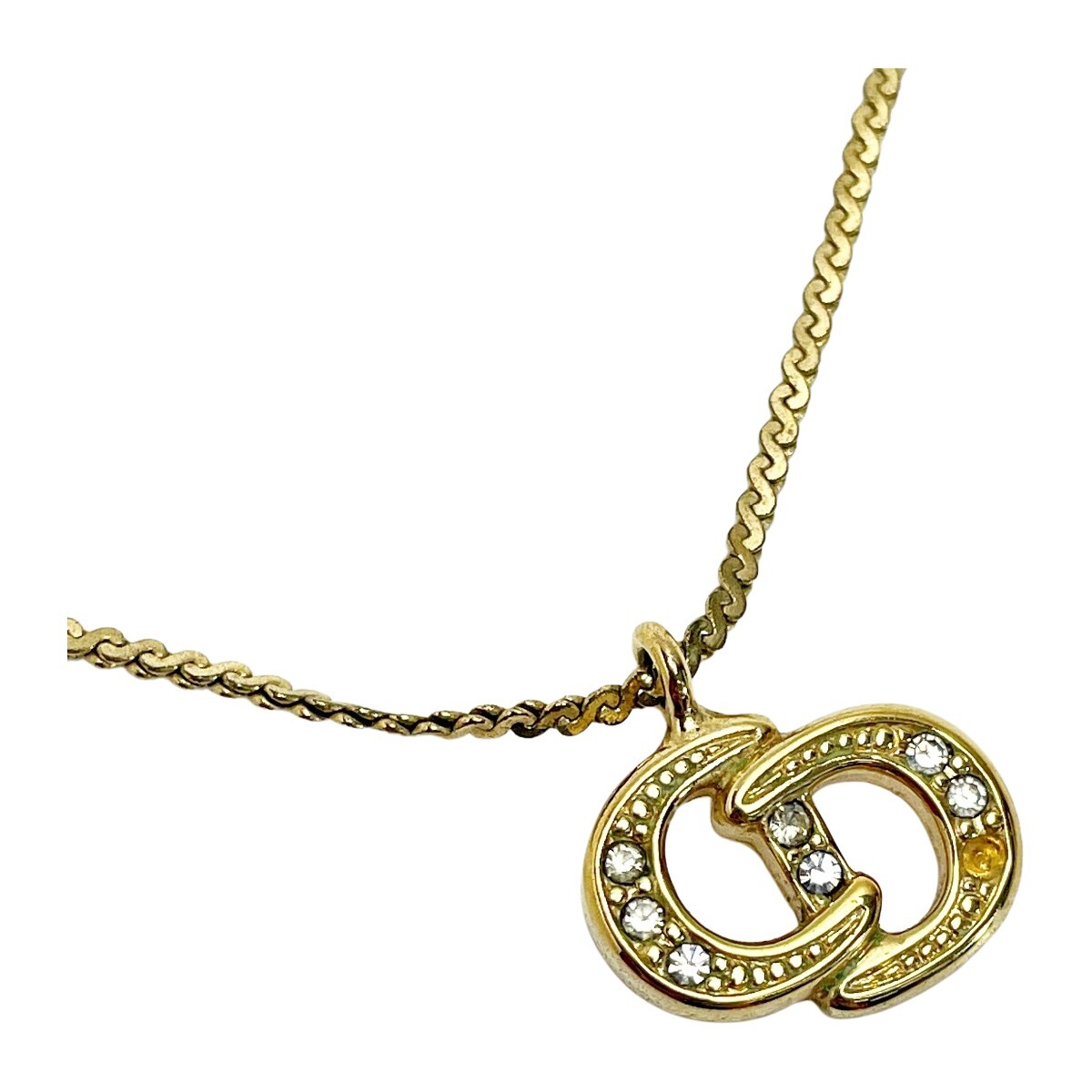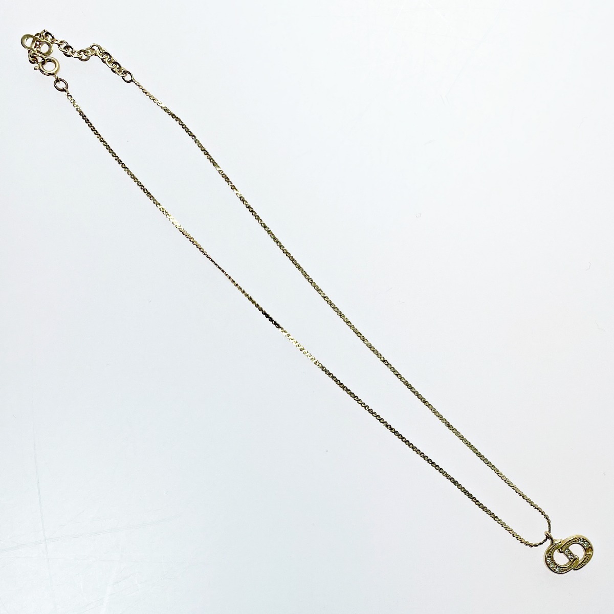 【商品名】中古 Christian Dior クリスチャンディオール CDロゴ ネックレス ゴールド ラインストーン GP レディース アクセサリー やや傷や汚れあり