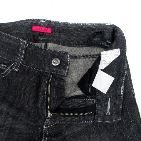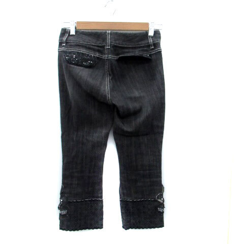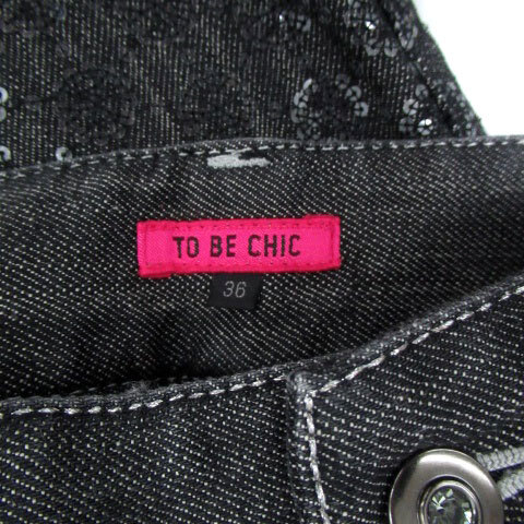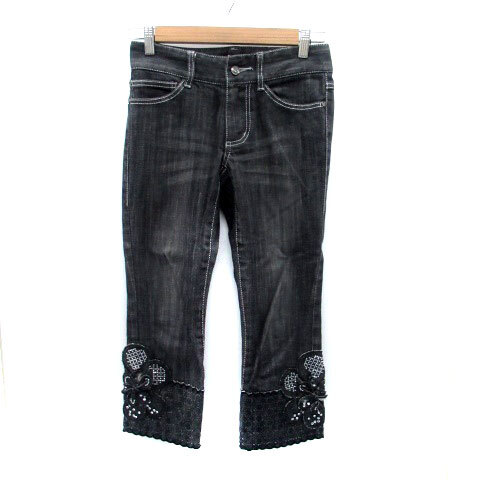 トゥービーシック TO BE CHIC デニムパンツ ジーンズ クロップド 七分丈 花柄 スパンコール ラインストーン 36 S ブラック レディース