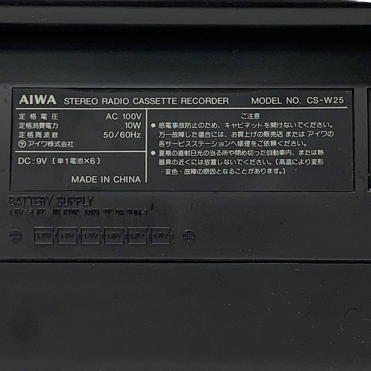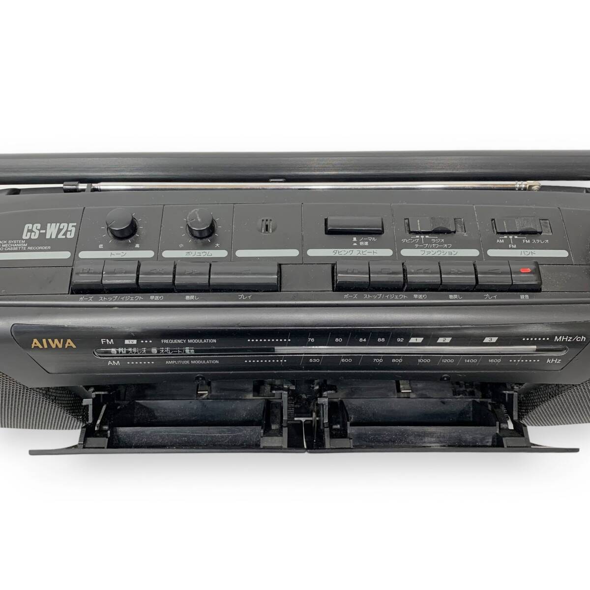 総合リサイクルショップ ファインドプレイスです。 当店の出品をご覧いただき、ありがとうございます。 自己紹介に当店のオークション対応(臨時休業日など含む)を記載しておりますので、入札前に必ずご確認ください。 → ファインドプレイス自己紹介 ← 送料は文末に一覧で表記しておりますので、入札前に必ずご確認ください。 ■商品詳細■ 【メーカー】 AIWA アイワ 【商品名/型式】 ステレオラジオカセットレコーダー CS-W25 【サイズ/重量】 高さ 約15cm 幅 約53cm 奥行 約12cm 重量 約2.5kg ※スケール採寸の為多少の誤差はご了承下さいませ。 【付属品】 ・電源コード 画像に写っているものが全てです。 【商品状態/動作確認】 使用に伴う傷や汚れがあります。 AM/FMラジオの受信、カセットテープの再生・巻戻し・早送りの確認をしました。 録音確認は出来ておりません。 古い品物のため経年による劣化がありますので、ご理解の上入札をお願いいたします。 ※画像はご覧になるモニター環境で違いが出てしまうため、実際の色とは若干異なる場合があります。 ※現状出品としてノークレーム、ノーリターンとさせていただきます。 ![]() |
