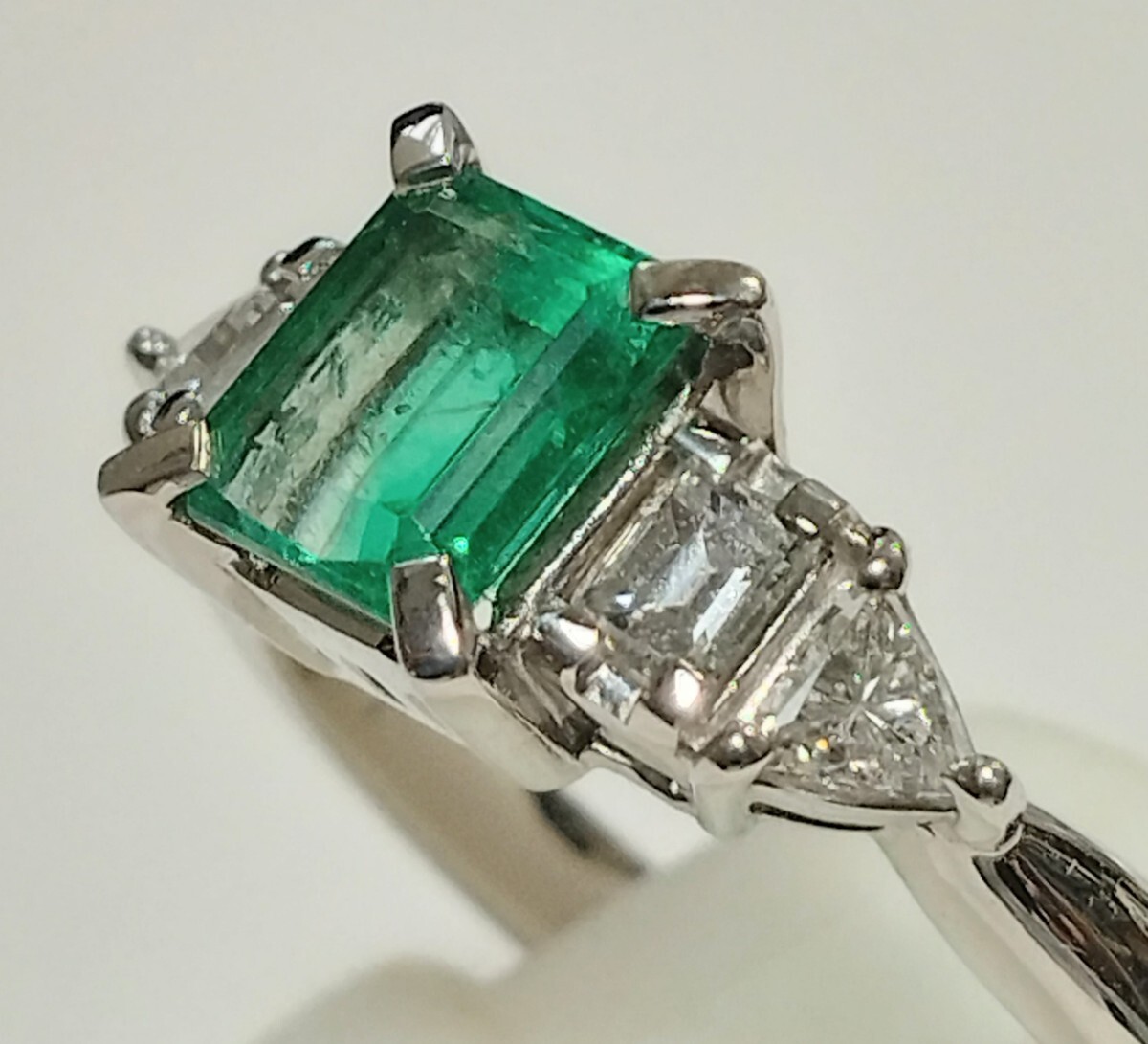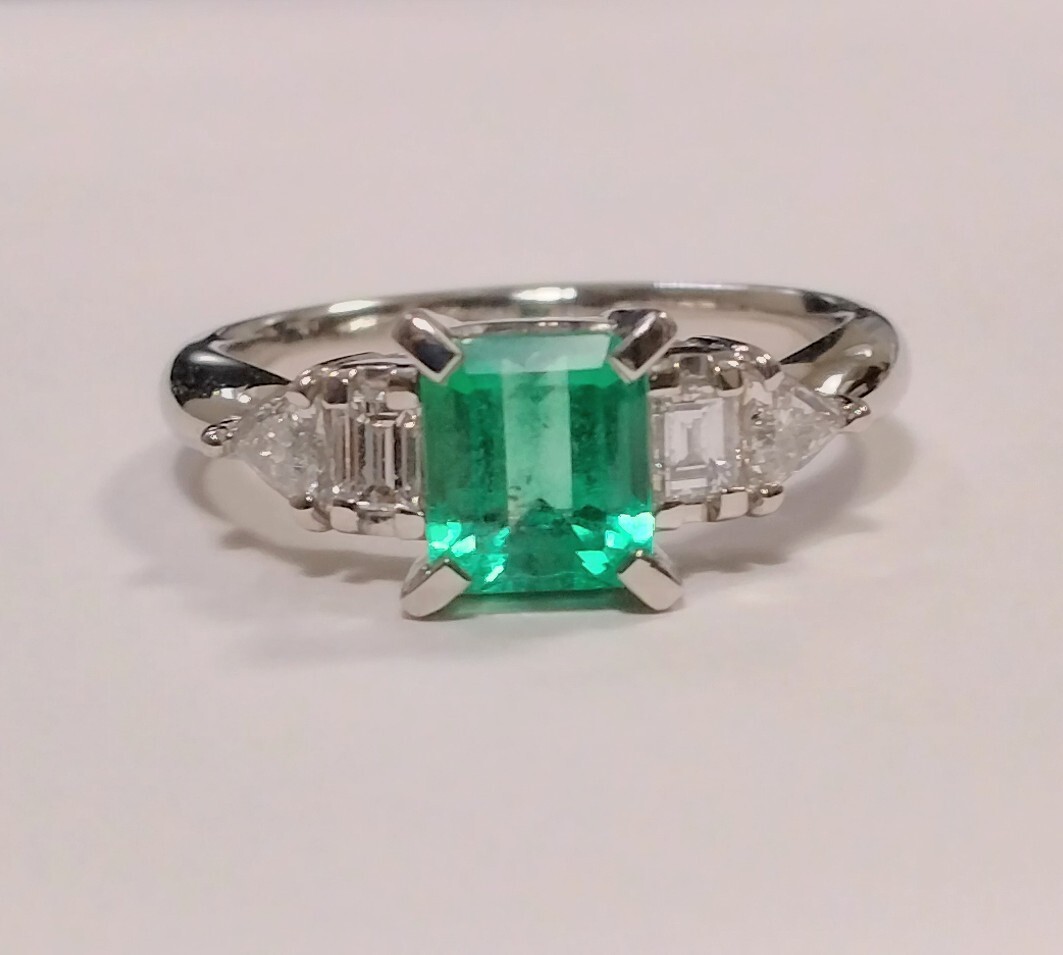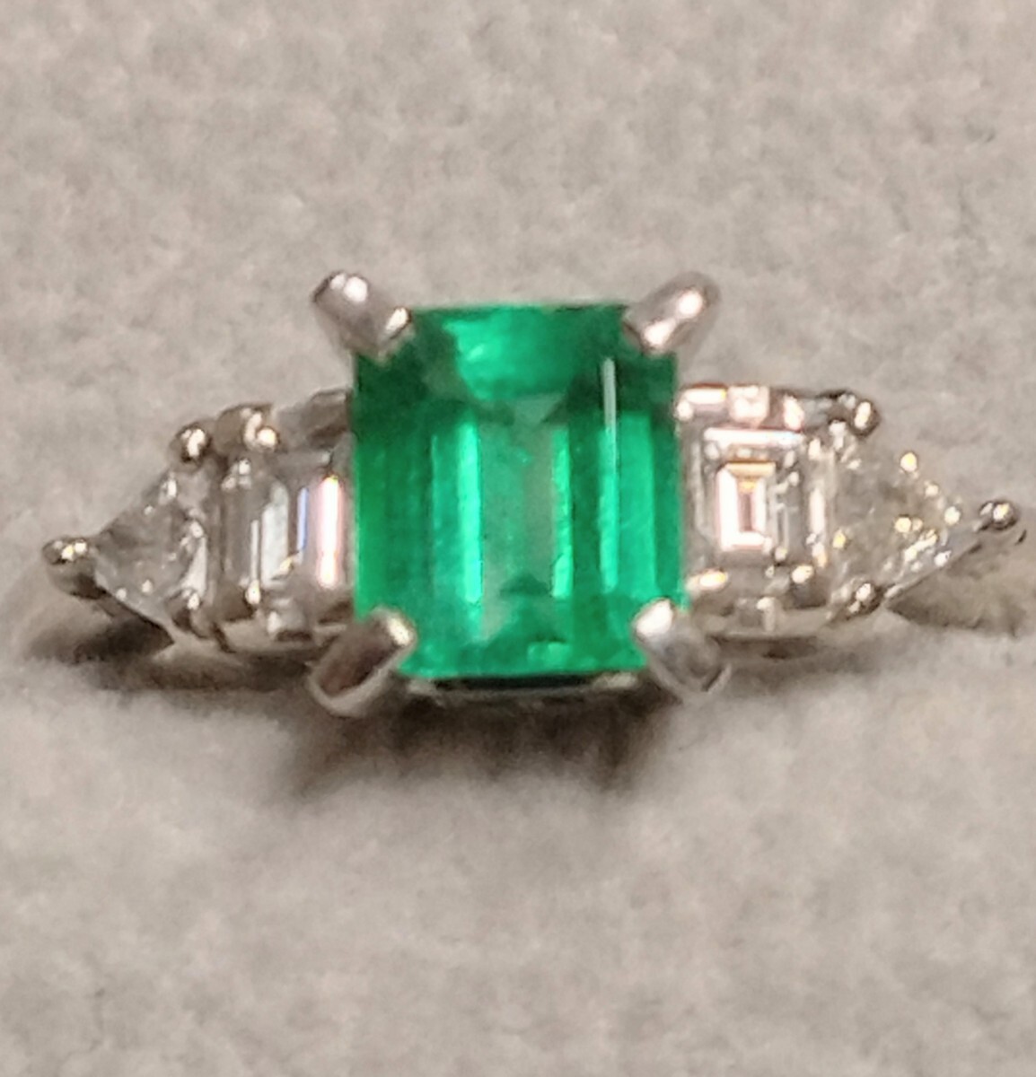 まさにエメラルドグリーンと呼ぶに相応しいグリーン鮮やかなエメラルドのリングです。