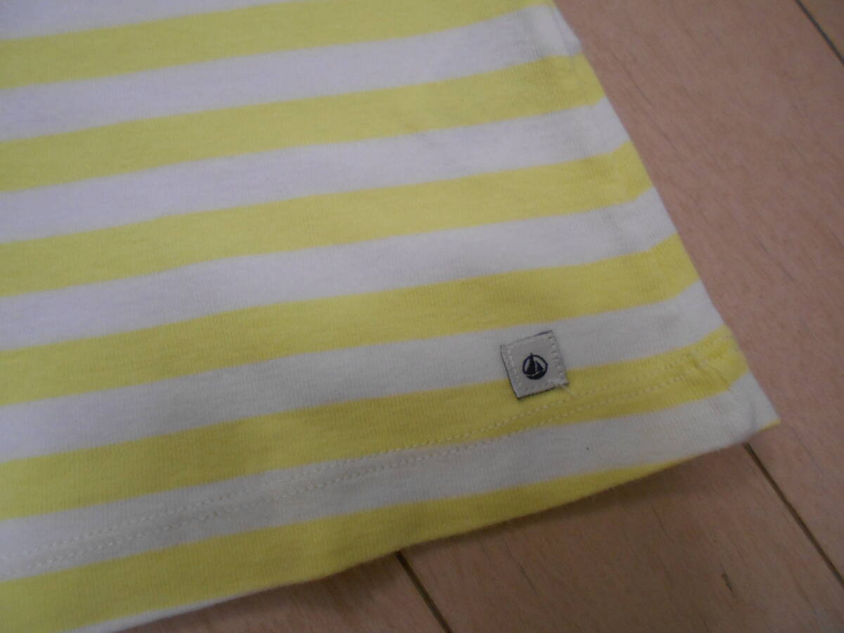 丈57身幅27 薄い黄色ボーダー 裾にブランドタグ サイズ5ans 110㎝ プチバトージャパン 綿 お腹当たりに薄い点汚れ2カ所
