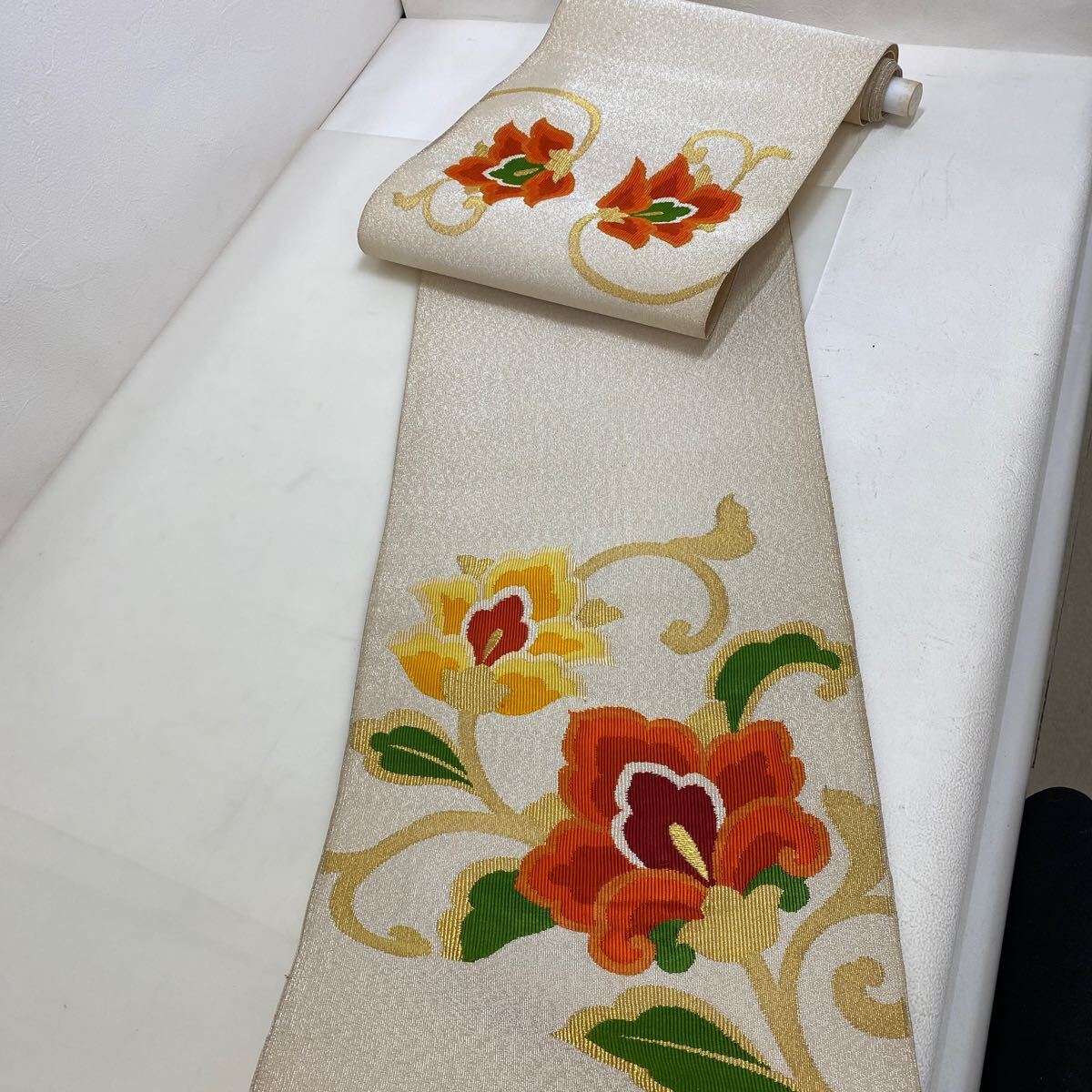 【商品名】 未仕立て 帯反物 【サイズ】 巻いたままの平置きで幅30cm程度です。 【素材】 不明 【状態】 長期保管品・中古ジャンク品【難あり】商品です。 新品ではありません。 以下、注意点ご確認の上入札お願い致します。 ・シミ・ヤケ・カビ、黄ばみ等あります。 防虫剤等のにおい・虫食い穴、 生地の強度がない等がある場合があります。 ・画像の加工は行っておりませんが、ディスプレイや カメラの関係上実物と色が異なる場合がございます。 ****************************************************** 管理番号 982 |