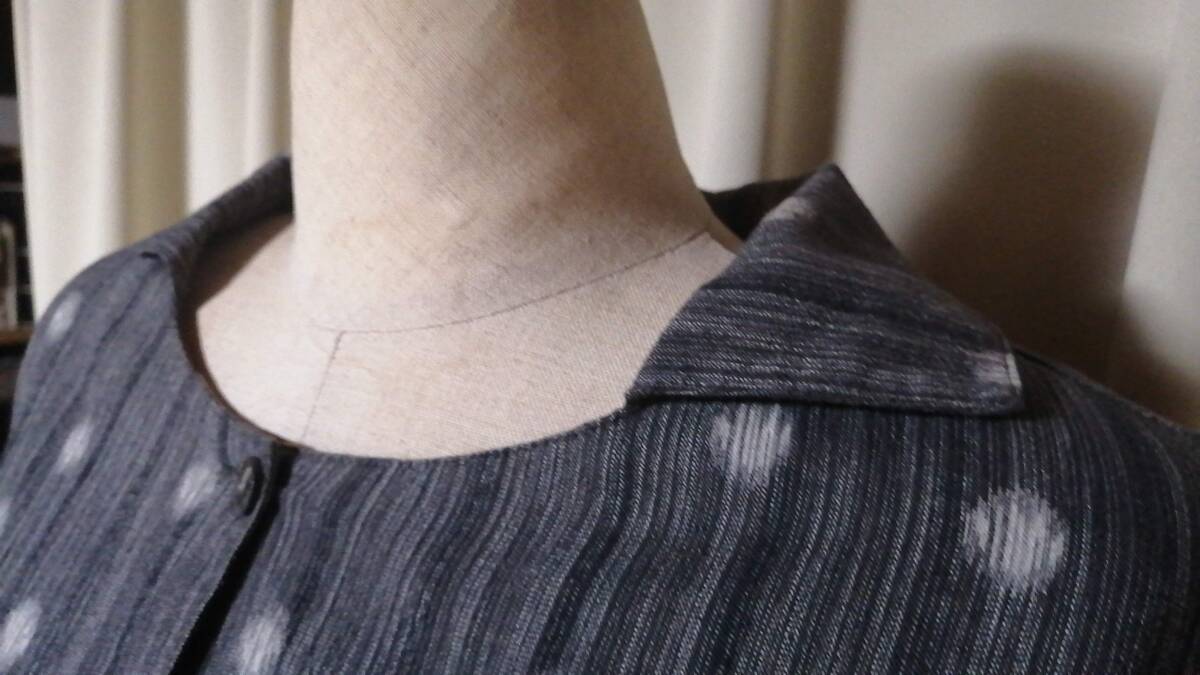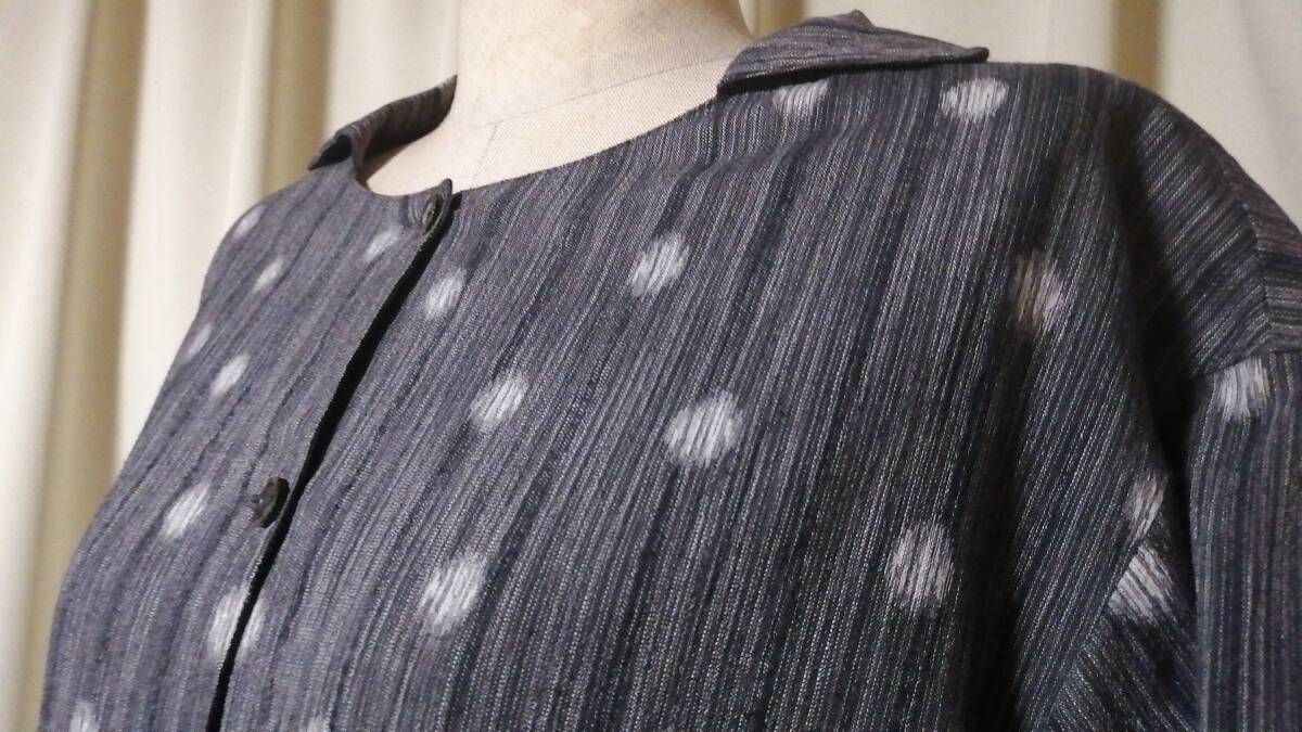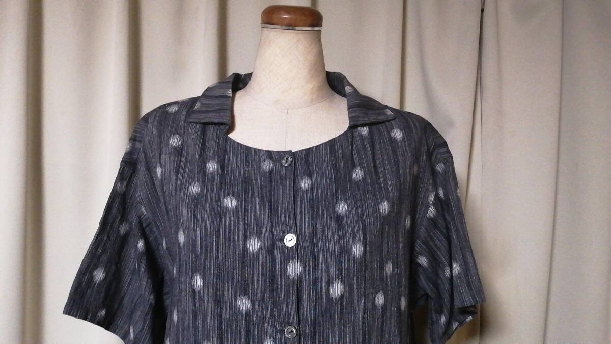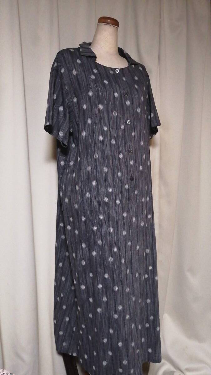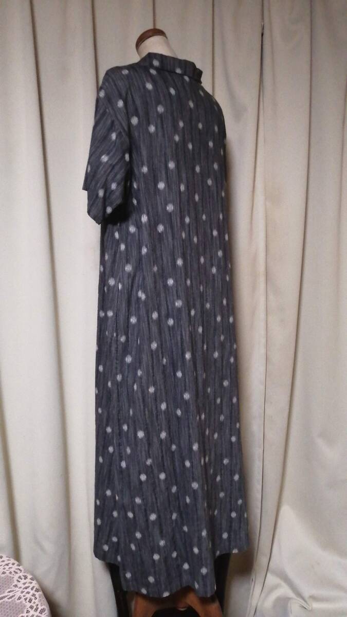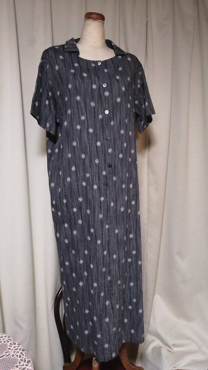 「群言堂 襟付きワンピース・富美 グレー 水玉絣織り 綿/レーヨン」クリーニング済