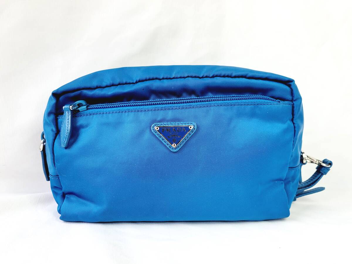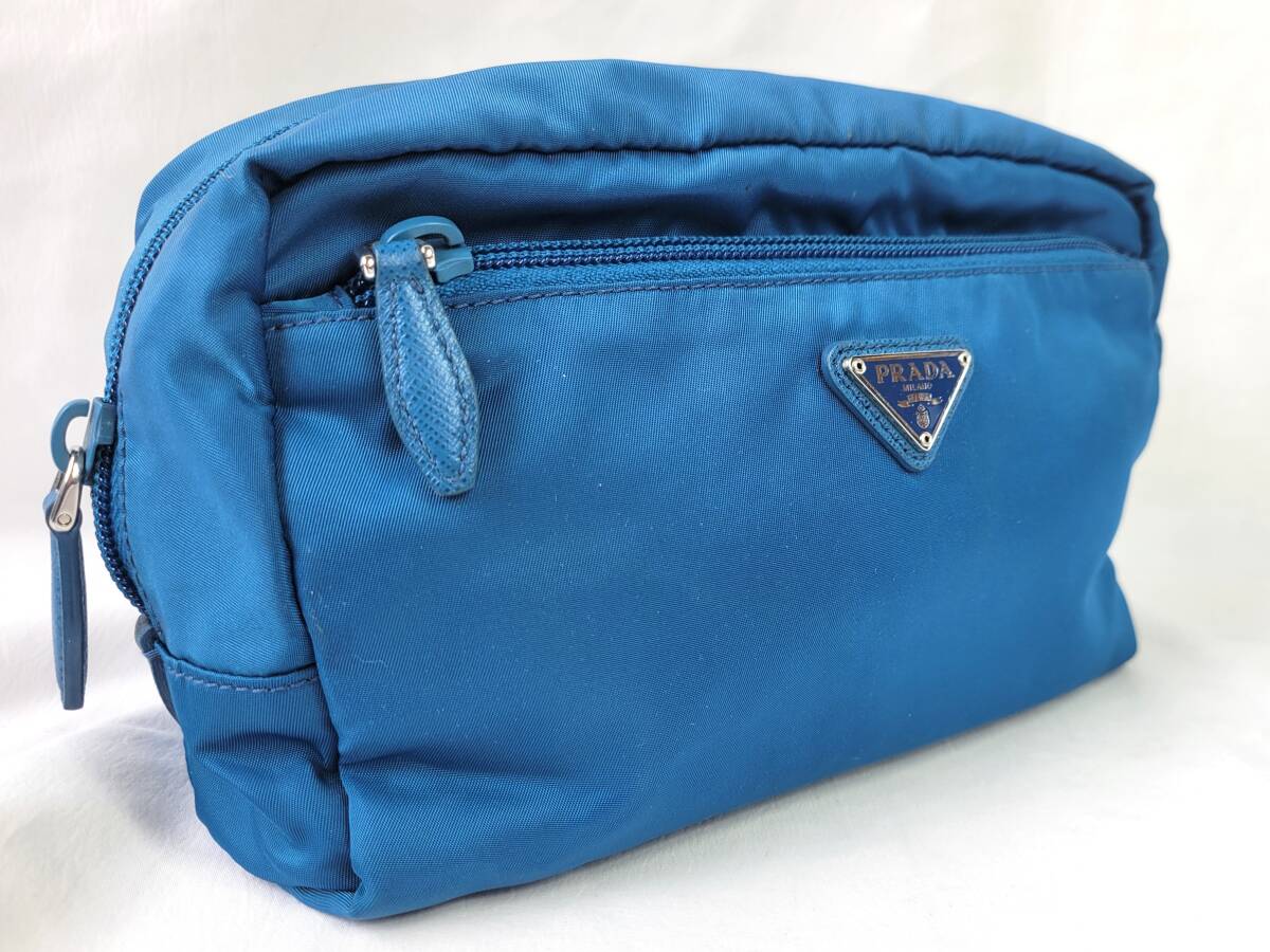 プラダ ポーチ コスメポーチ 三角ロゴプレート ナイロン ブルー PRADA