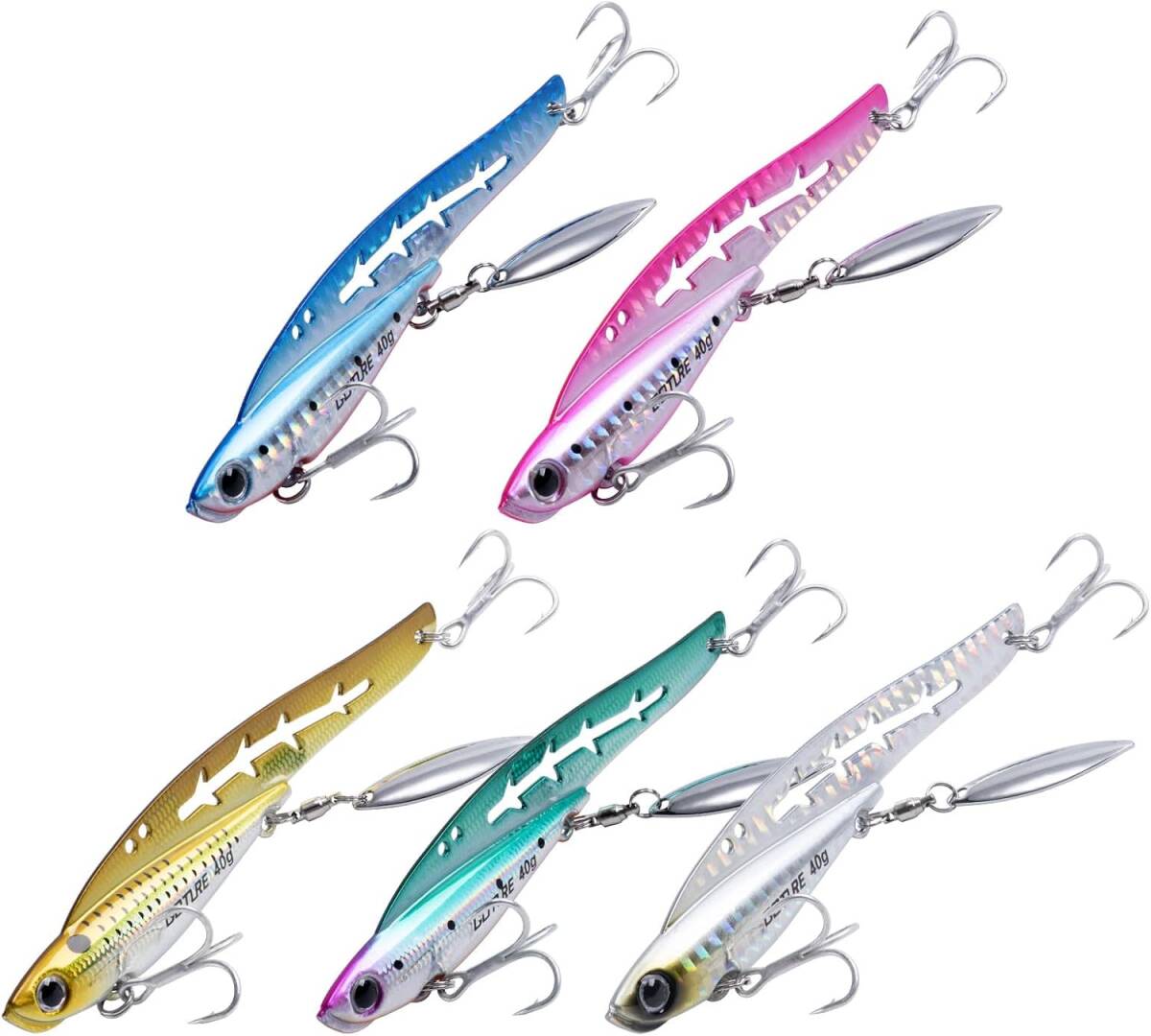メタルジグ 5個セット 5色あり 45g ブレードジグ シーバスルアー ジグスピナー ブレード スピンテールジグ トリプルフック付 ルアーセット