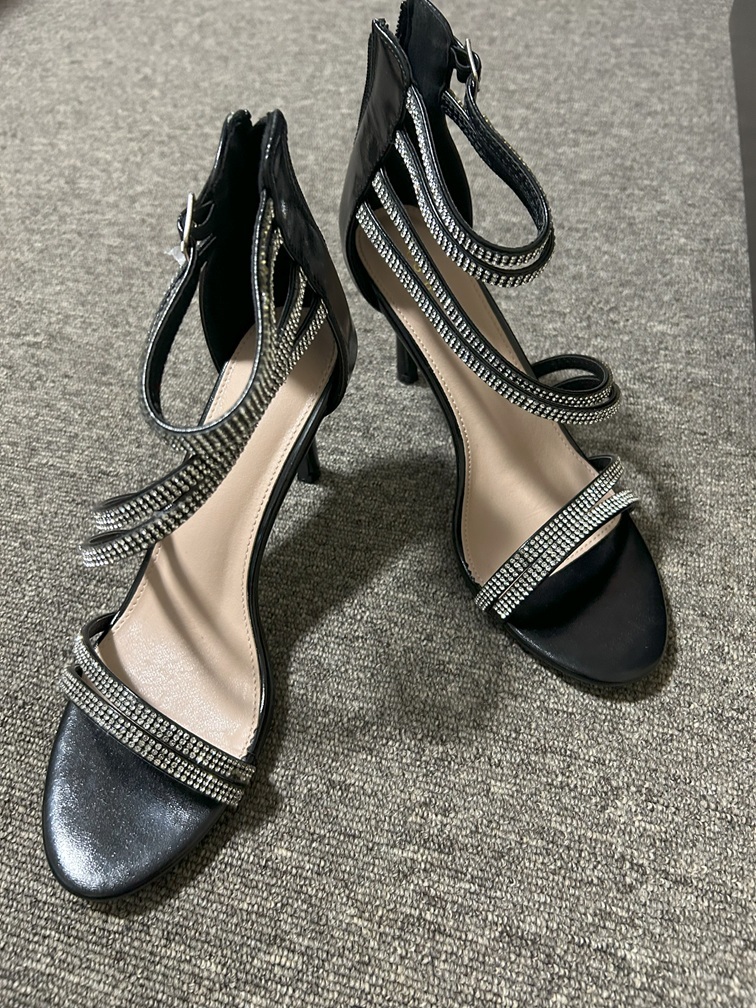 値下げしました! 新品 ゴージャスブラック サイズ:25.0cm ヒール高:8.5㎝ ハイヒール ピンヒール サンダル ミュール