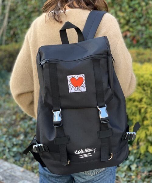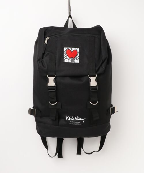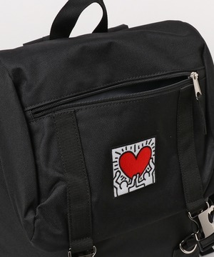 TE/Keith Haring(キース・ヘリング) 刺繍入りダブルバックル フラップバックパック KHB-KH-1705 ブラック