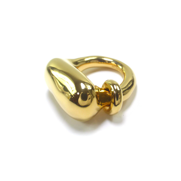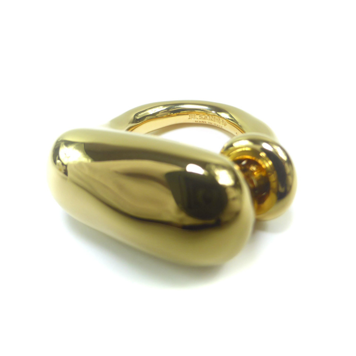 滑らかな曲線が美しいハンドメイドのジルサンダーのゴールドリング。 ボリュームのあるトップのサイドに小さなリングを備えた可愛らしいデザインは印象に残る指先を演出してくれるミニマルな指輪。 是非この機会に如何でしょうか。 |