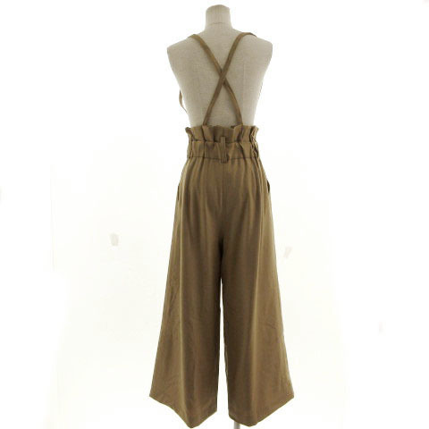 ダイアグラム グレースコンチネンタル サロペット ワイドパンツ ハイウエスト サスペンダー付き ウール混 茶系 ベージュブラウン 36