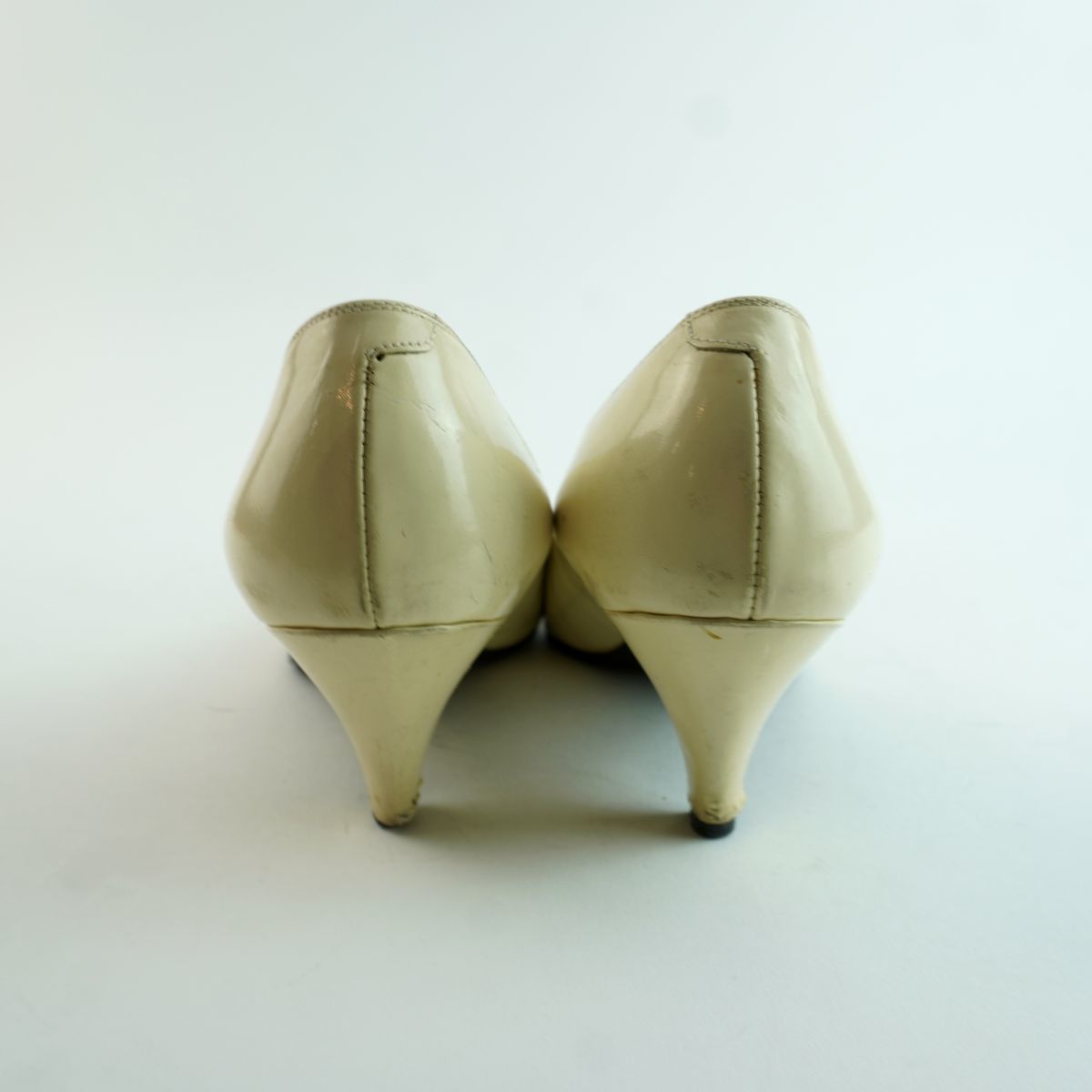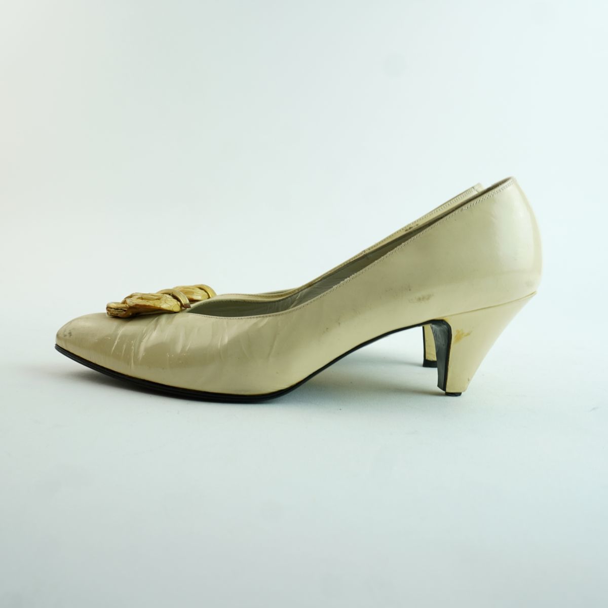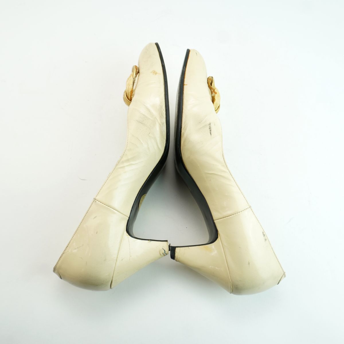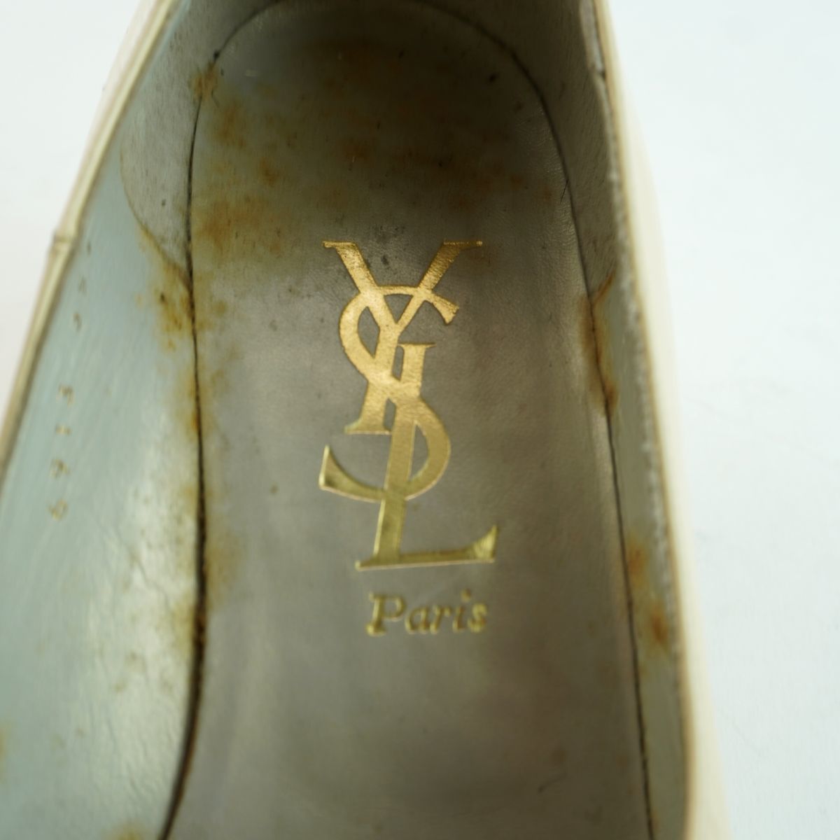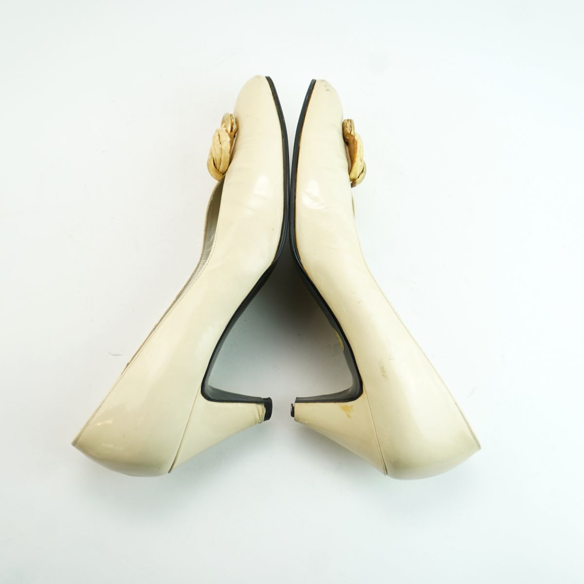 Yves Saint Laurent イヴ・サンローラン 35 1/2 22.5 パンプス ヒール アーモンドトゥ ゴールド金具 エナメル アイボリー/MC48