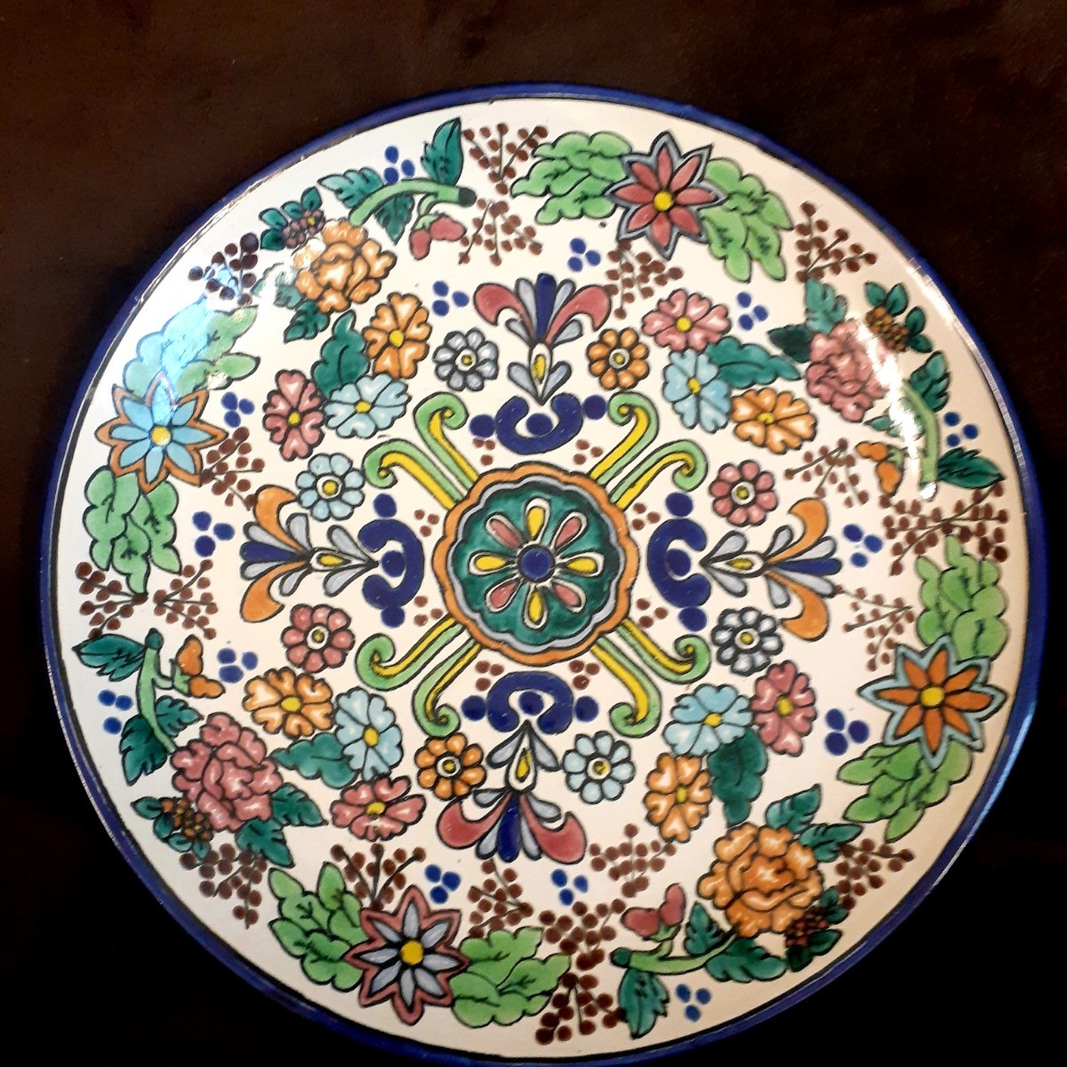 絵皿 飾皿 トナラ焼 壁掛皿 メキシコ製 約29.5cm×3cm
