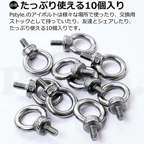「Pstyle. アイボルト M6 天井 ネジ フック ステンレス 金具 10個セット PST-066」▼4582548240972▼(商品説明)【ワイヤーなどの吊り金具として】 フックやロープ等を引っ掛けて連結したり、ハンモックを固定したり、天井から吊り下げたりするのが一般的な用途になります。また、フックボルトにワイヤーやチェーン等を繋げるために、部材側に取り付けられる場合もございます。・【まとめてお得な10個入り】 Pstyle.のアイボルトは、様々な場所で使え、交換用ストックとして持っていたり、友達とシェアしたり、業者様にもご利用しやすい10個セットです。・【304ステンレス製】 ネジフックは、サビに強く耐久性もあるステンレス製のため、屋外の使用でも問題ありません。表面はバリなど引っかかりを抑えたなめらかな仕上がりのため、安全にお使いいただけます。・【車内のカスタム用にも】 ワゴンやキャンピングカー、小型SUVなど、車内の快適性アップや車中泊などのカスタムパーツとしても利用されております。*サイズ、使用方法に関しましては別途お調べのうえご利用ください。・【仕様】 重量:約20g。 パッケージ:アイボルトM6 10個入り。
