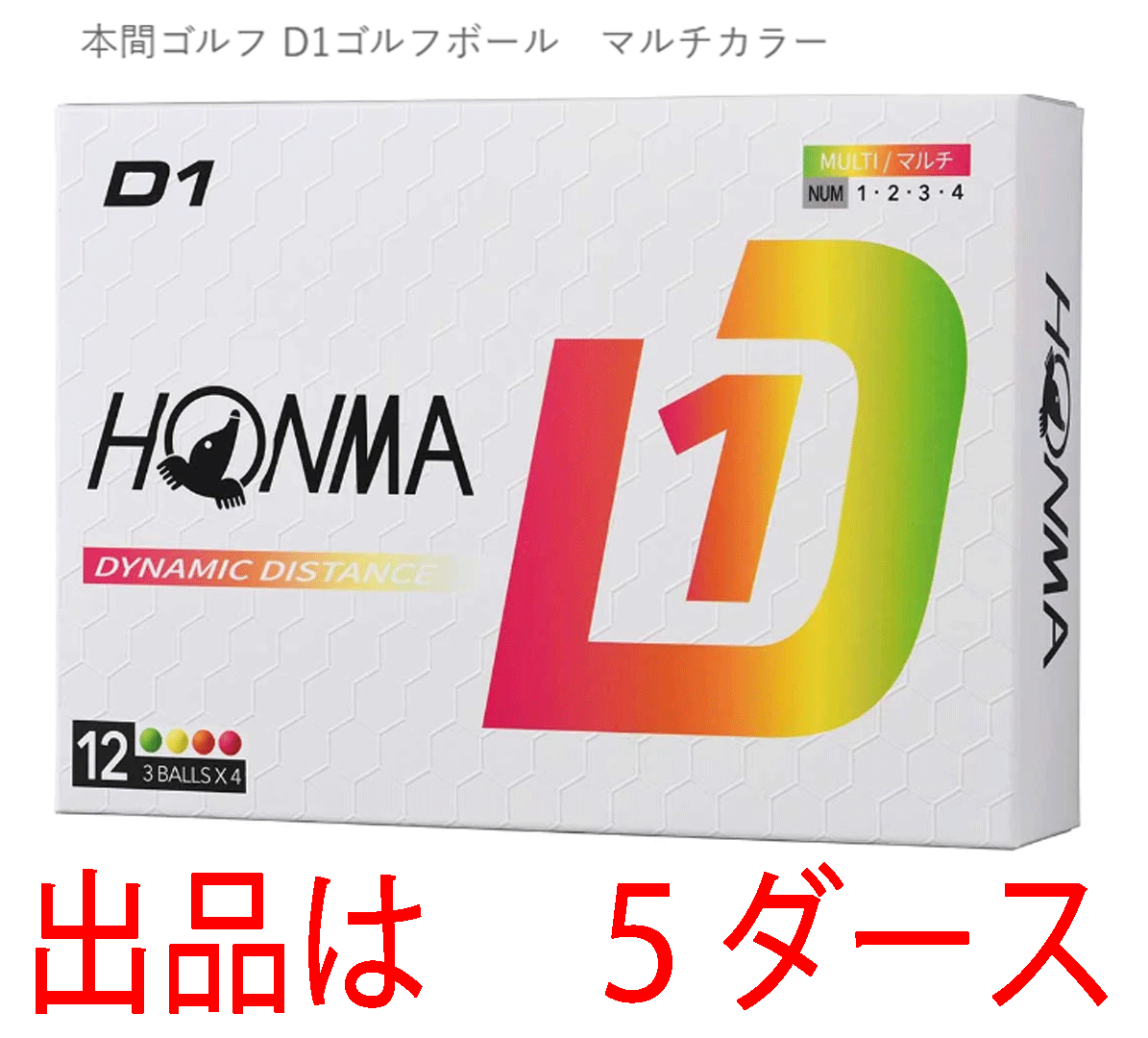 新品■ホンマ■2024.2■D1-2024■マルチカラー■5ダース■飛んで、環境にもお財布にもやさしい 飛距離重視の進化系 飛びます!■正規品
