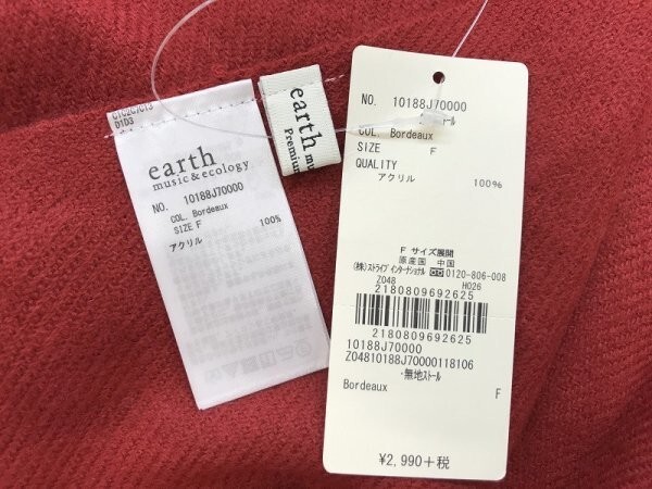 新品!earth music&ecology アースミュージック&エコロジー レディース 無地 ストール アクリル100% F 赤 です。