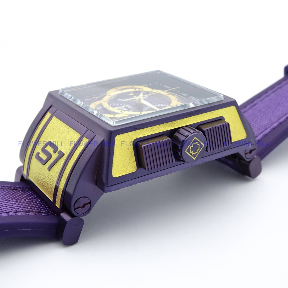 スクエアケースにパープル・ゴールドのカラーリングが目を引くデザイン!