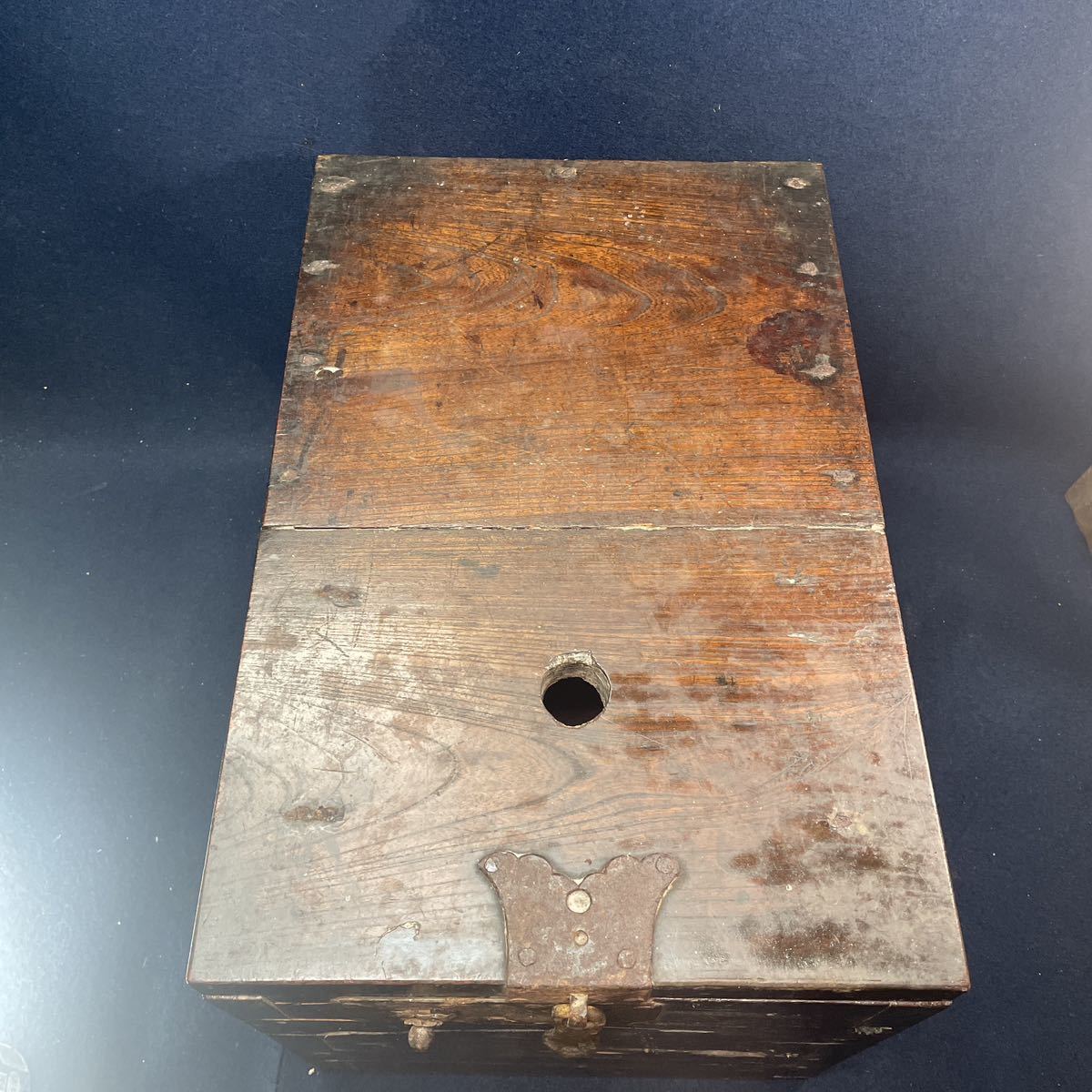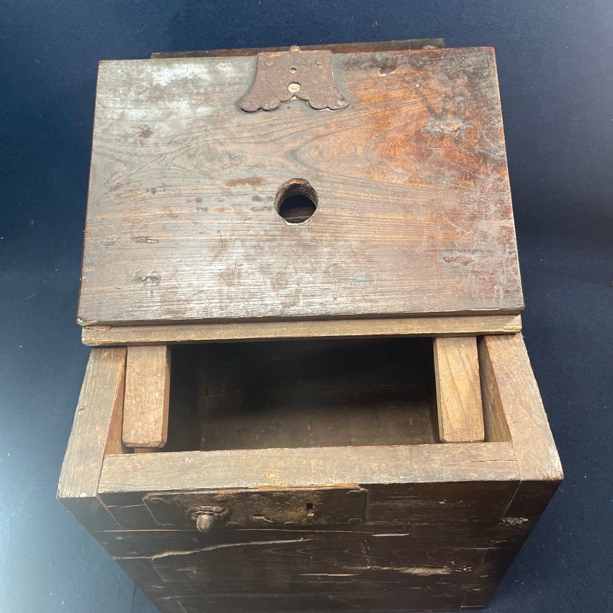 木製銭箱 鍵なし 欅賽銭箱 欅千両箱 道具箱 小物入れ 船箪笥 時代箱 古民具 木製ミニ箪笥 和風家具 昭和レトロ