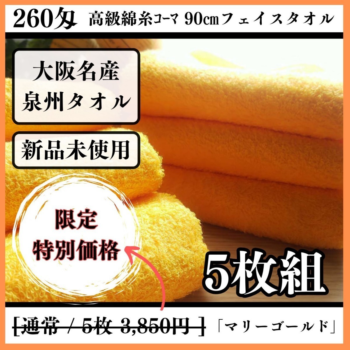 【新品未使用】【泉州タオル】260匁高級綿糸コーマ 90㎝マリーゴールドフェイスタオルセット5枚 タオル新品 タオルまとめて 吸水性抜群