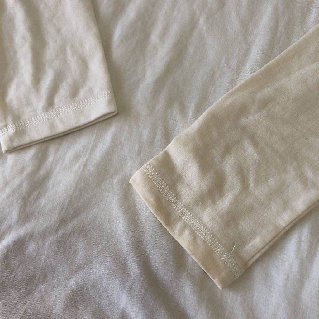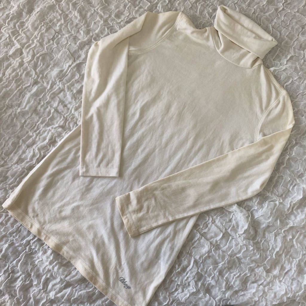 裾のロゴが可愛い薄地のタートルネックカットソーです。
