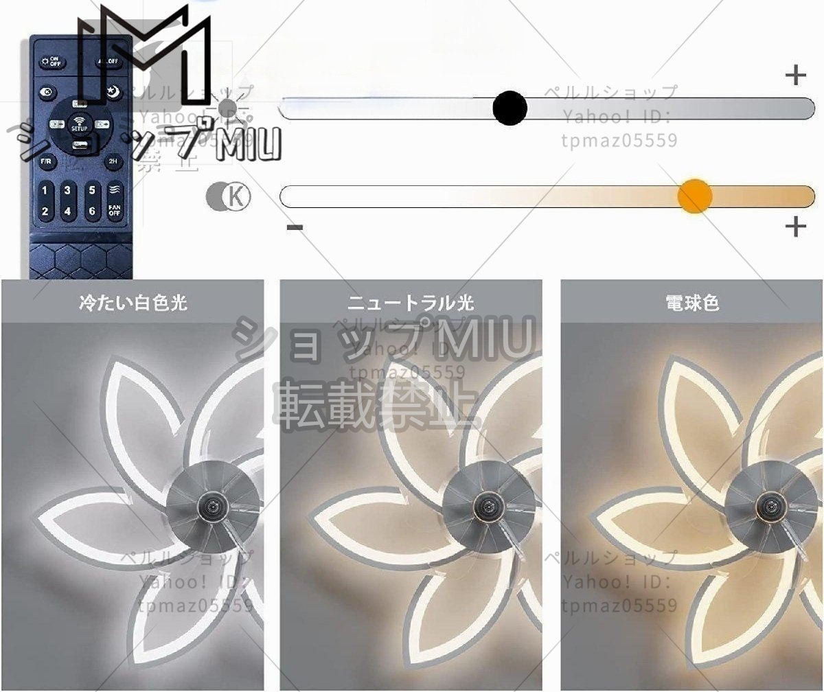 高品質☆現代風LEDシーリングファンライト、照明天井ファン、リモコン制御、3種類のライトカラー、6種類の風速モード ファ
