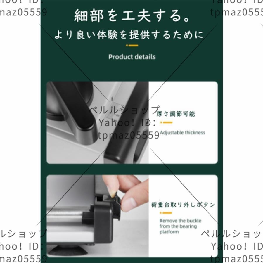 ブレードはステンレスSUS420を使用し、錆の防止と切れ味を両立。厚さ1.5cmまで調節しやすいように目盛りが刻まれています。脚は吸盤になっており、簡単に固定できて不意のズレを防止します。ブレードがワンタッチで取り外せるのでお手入れも簡単!