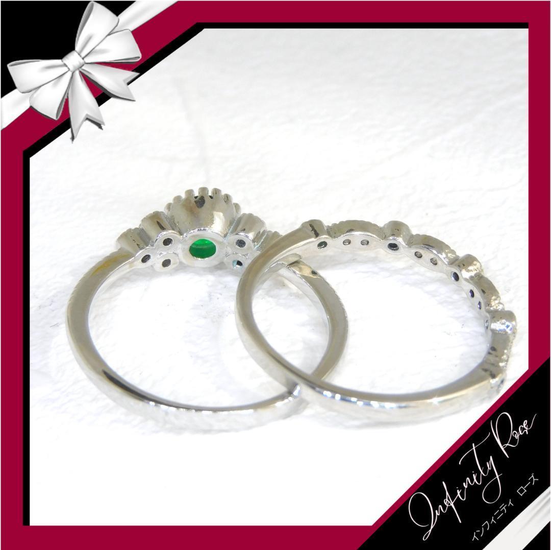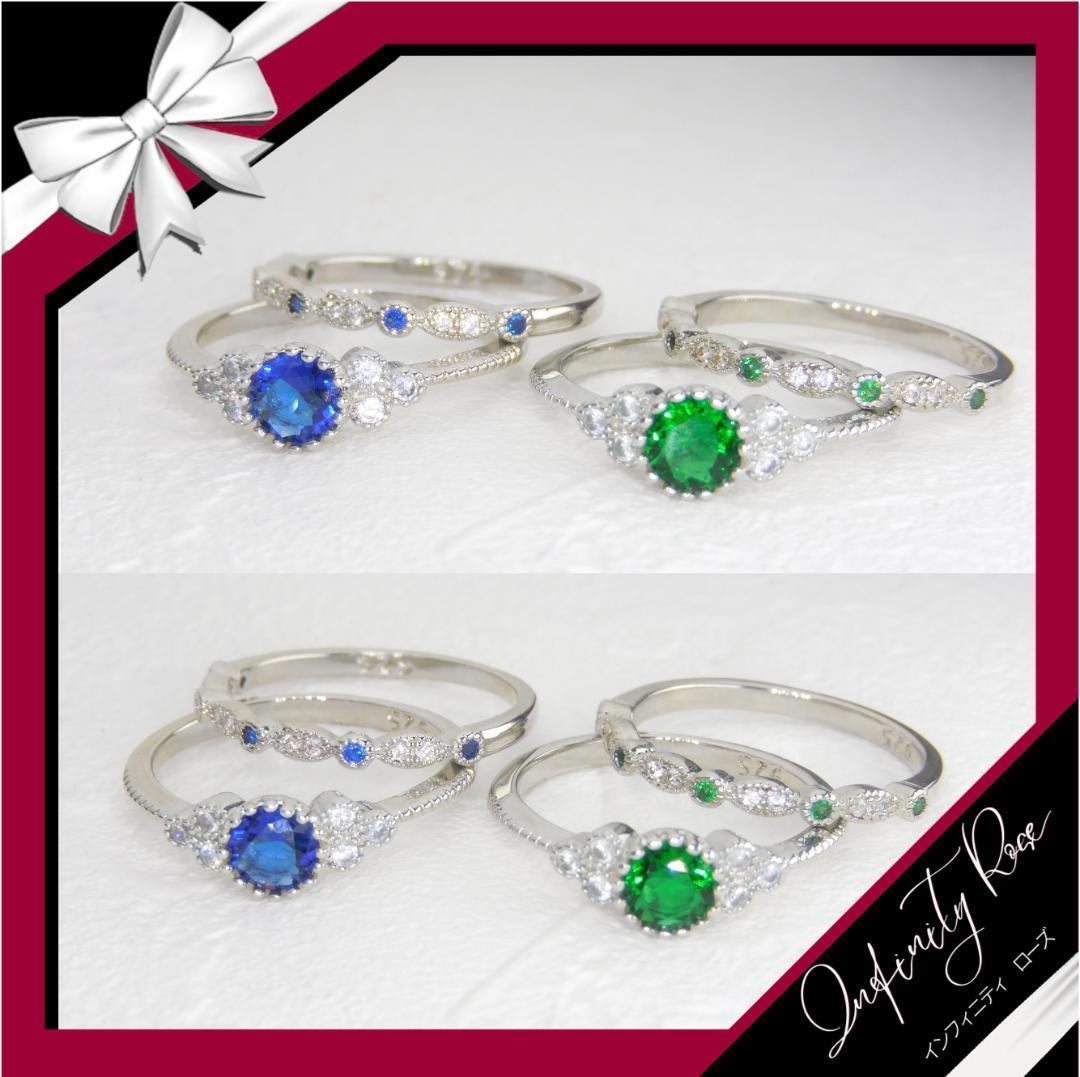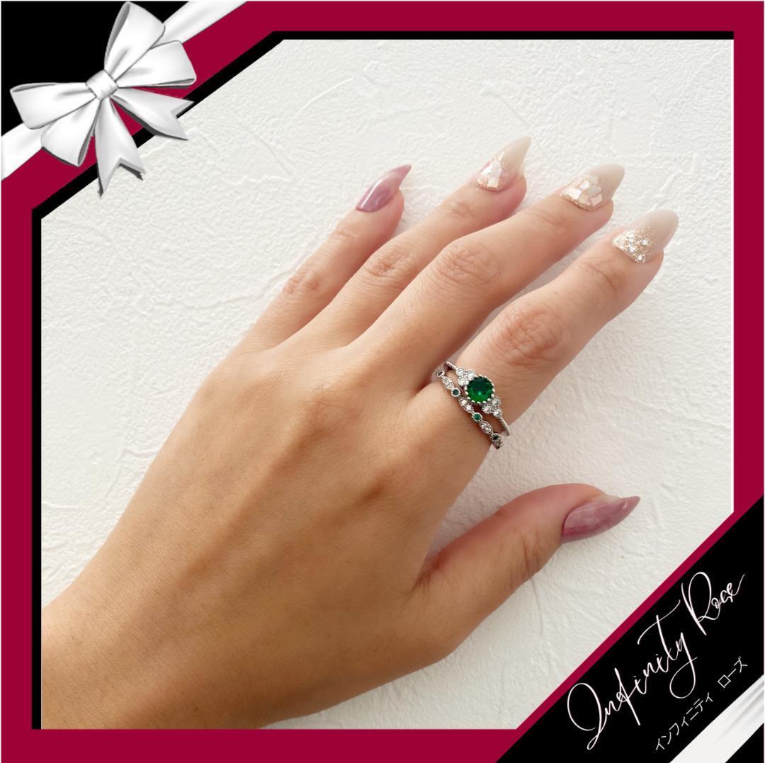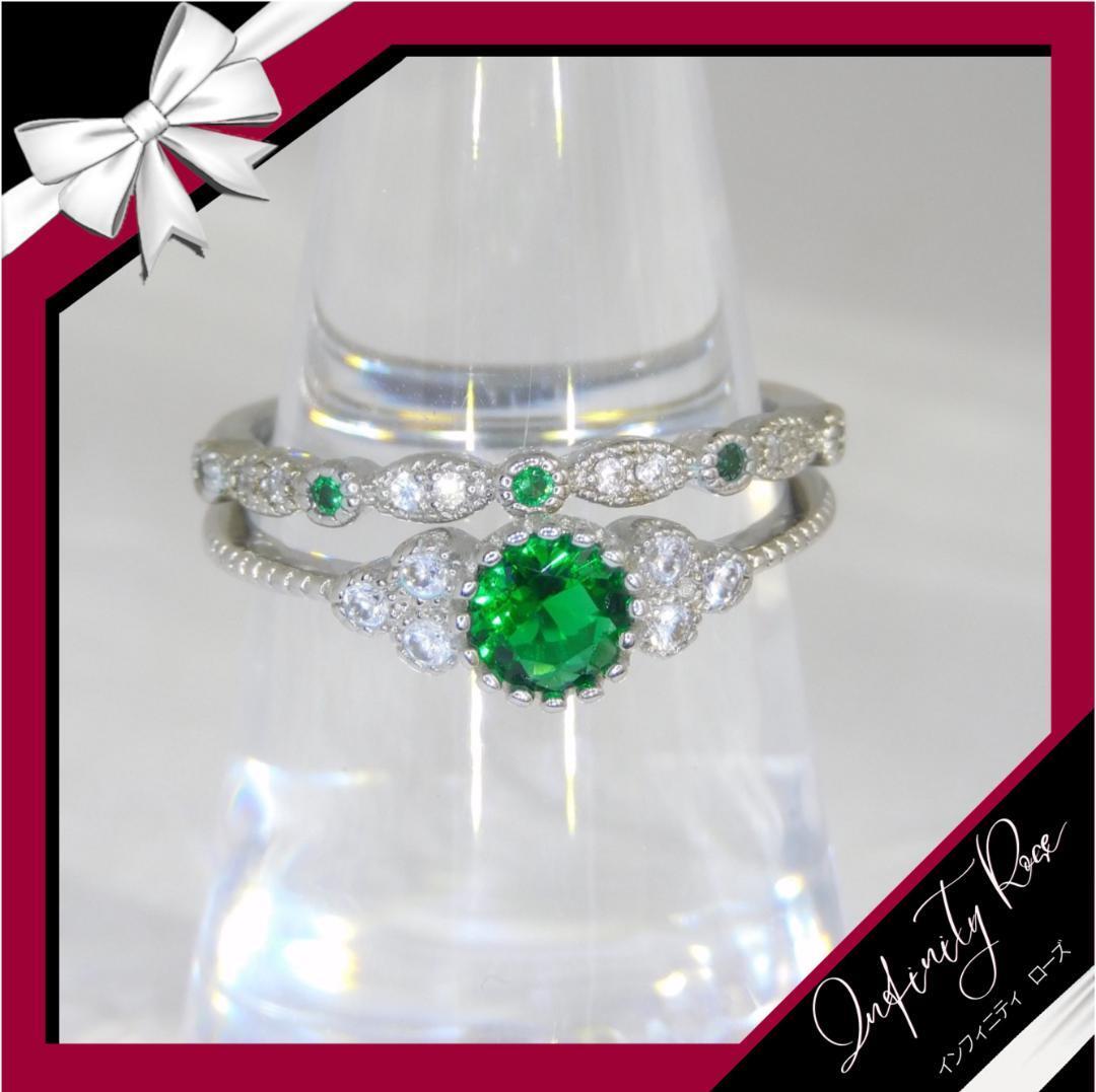 (R057SG)12号 グリーンクリスタル2本セットペアエンゲージ細リング 指輪