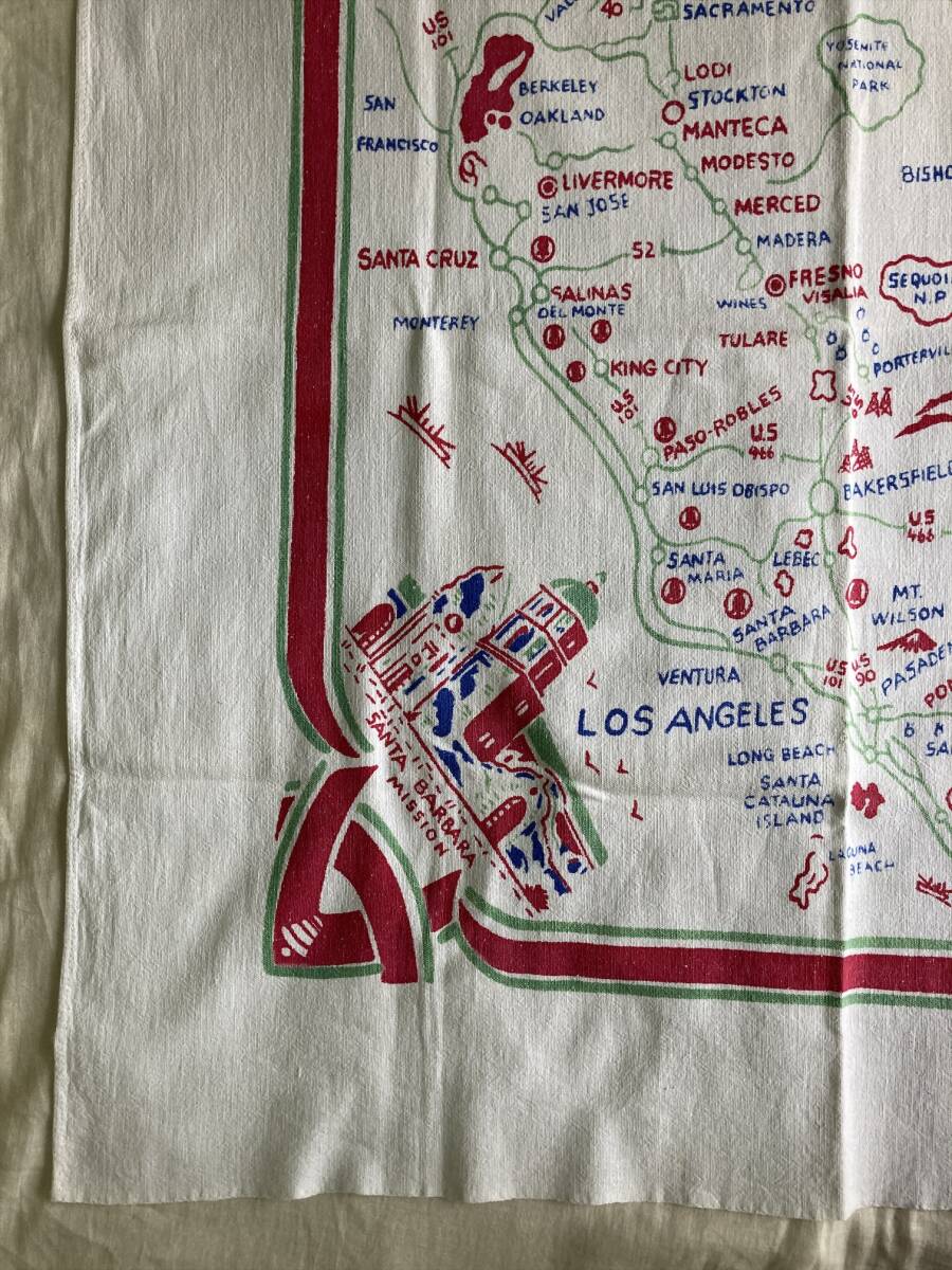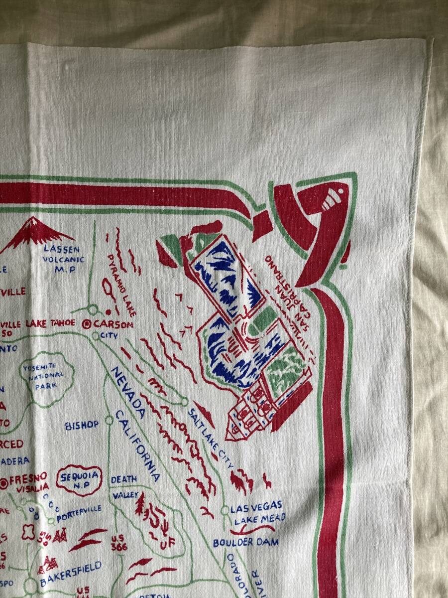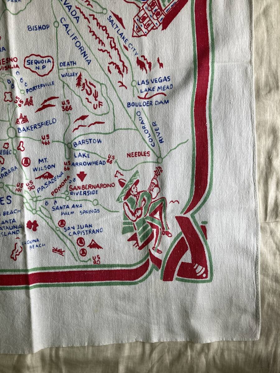 1950年代のビンテージスーベニアテーブルクロスになります。中型の大きさです。
