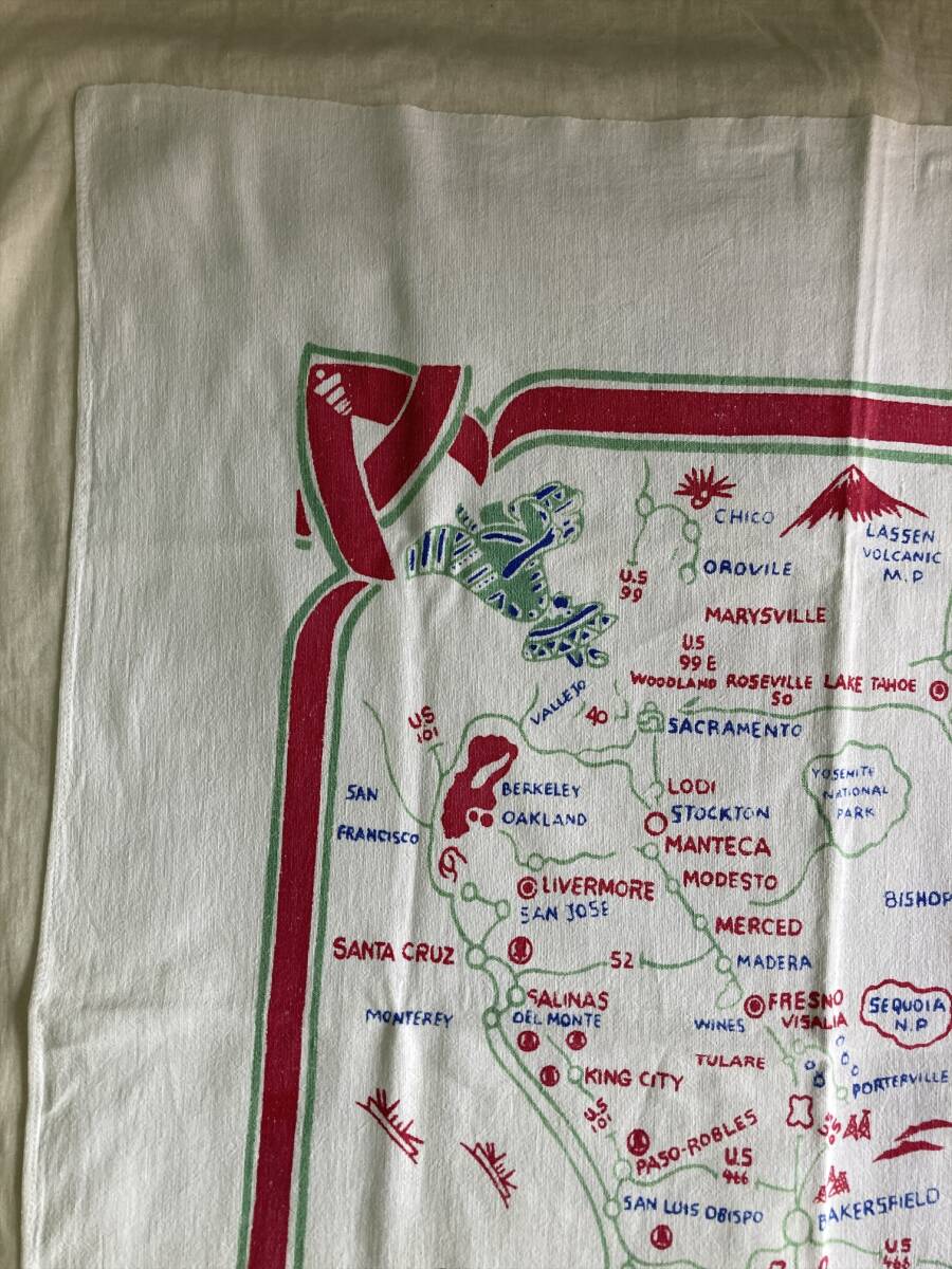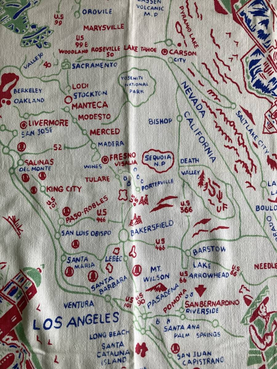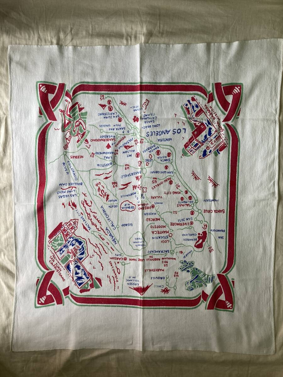 1950年代のビンテージスーベニアテーブルクロスになります。中型の大きさです。