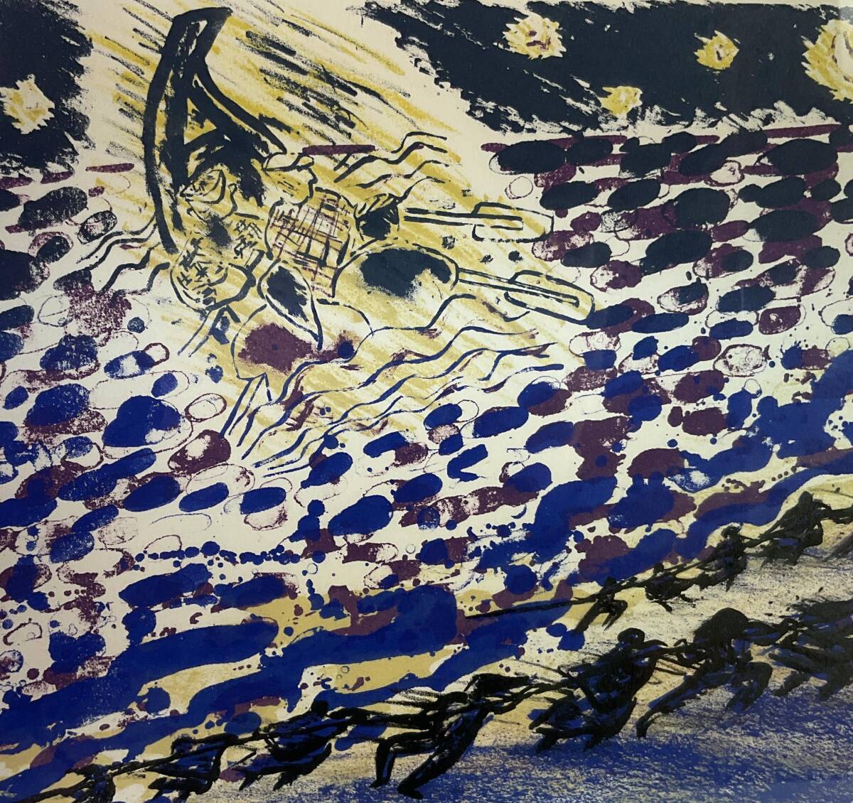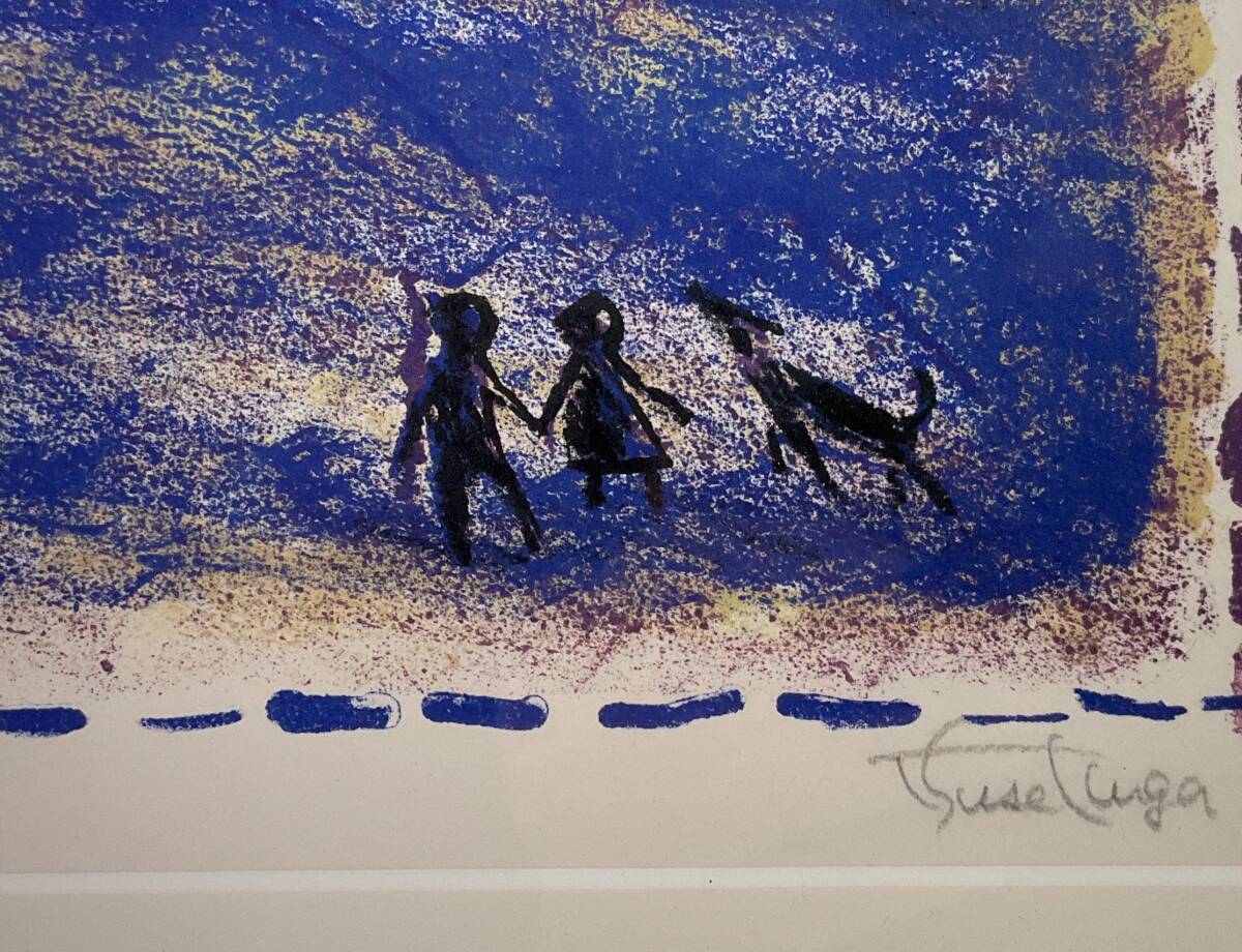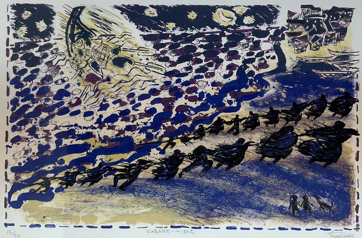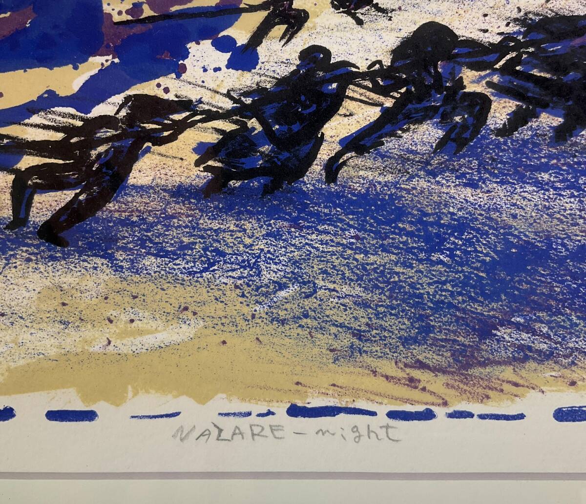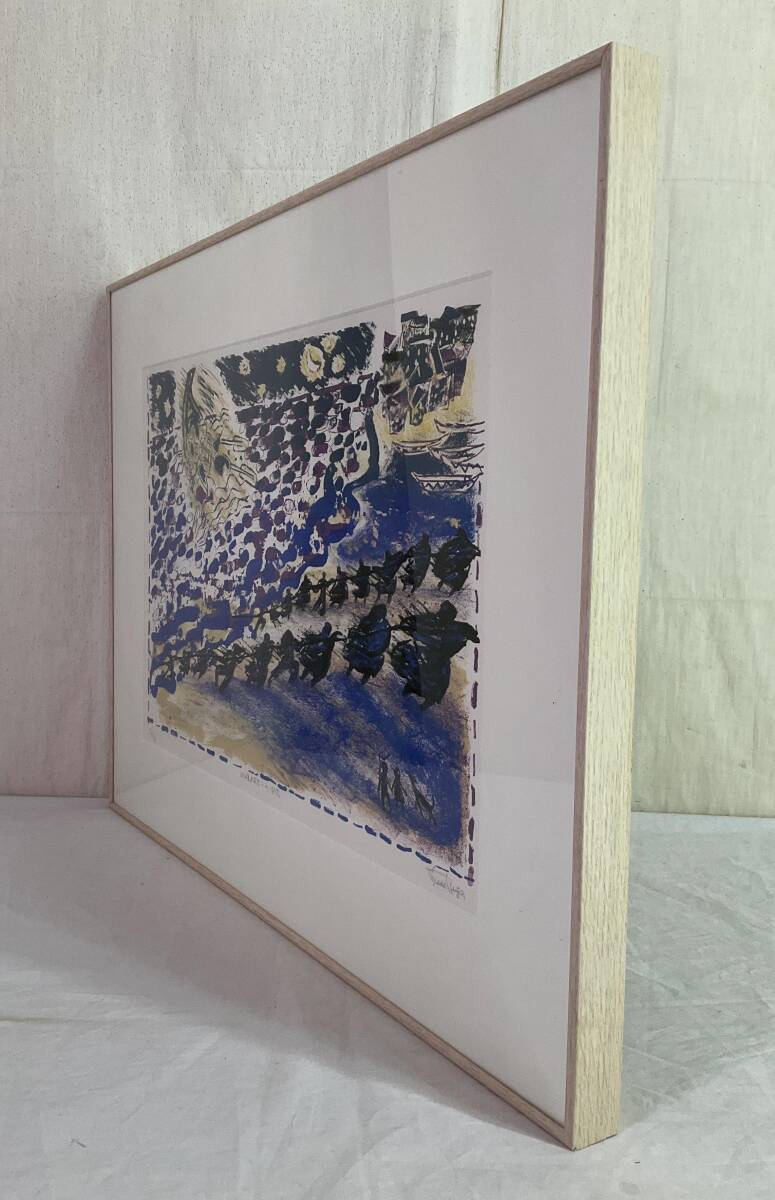 【真作】《リトグラフ》久我通世 NAZARE-night 鉛筆サイン 額装 版画家 絵本作家