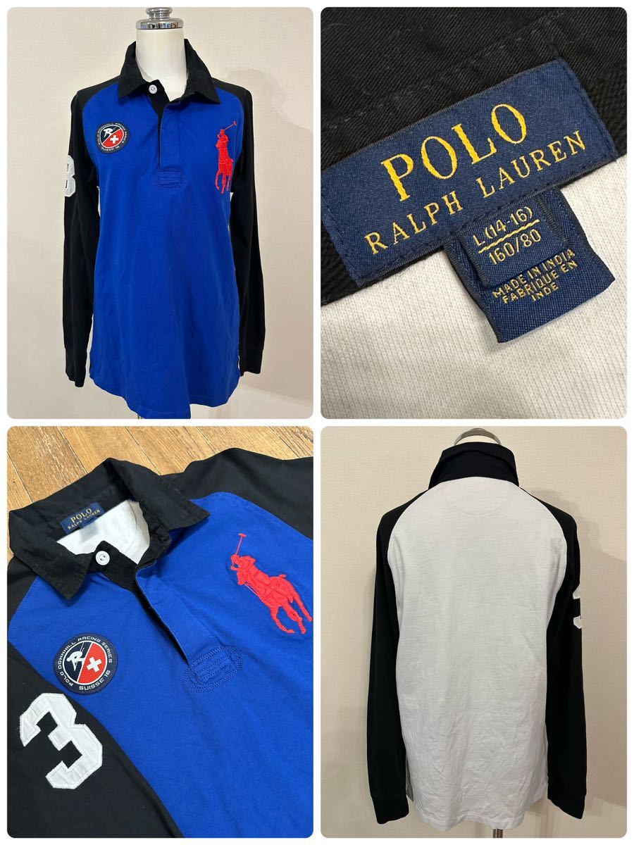 名作 本物 POLO RALPH LAUREN ポロ ラルフローレン 長袖 ポロシャツ カットソー L (14-16) 160/80 キッズ ジュニア レディース